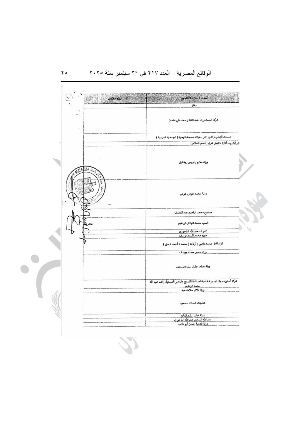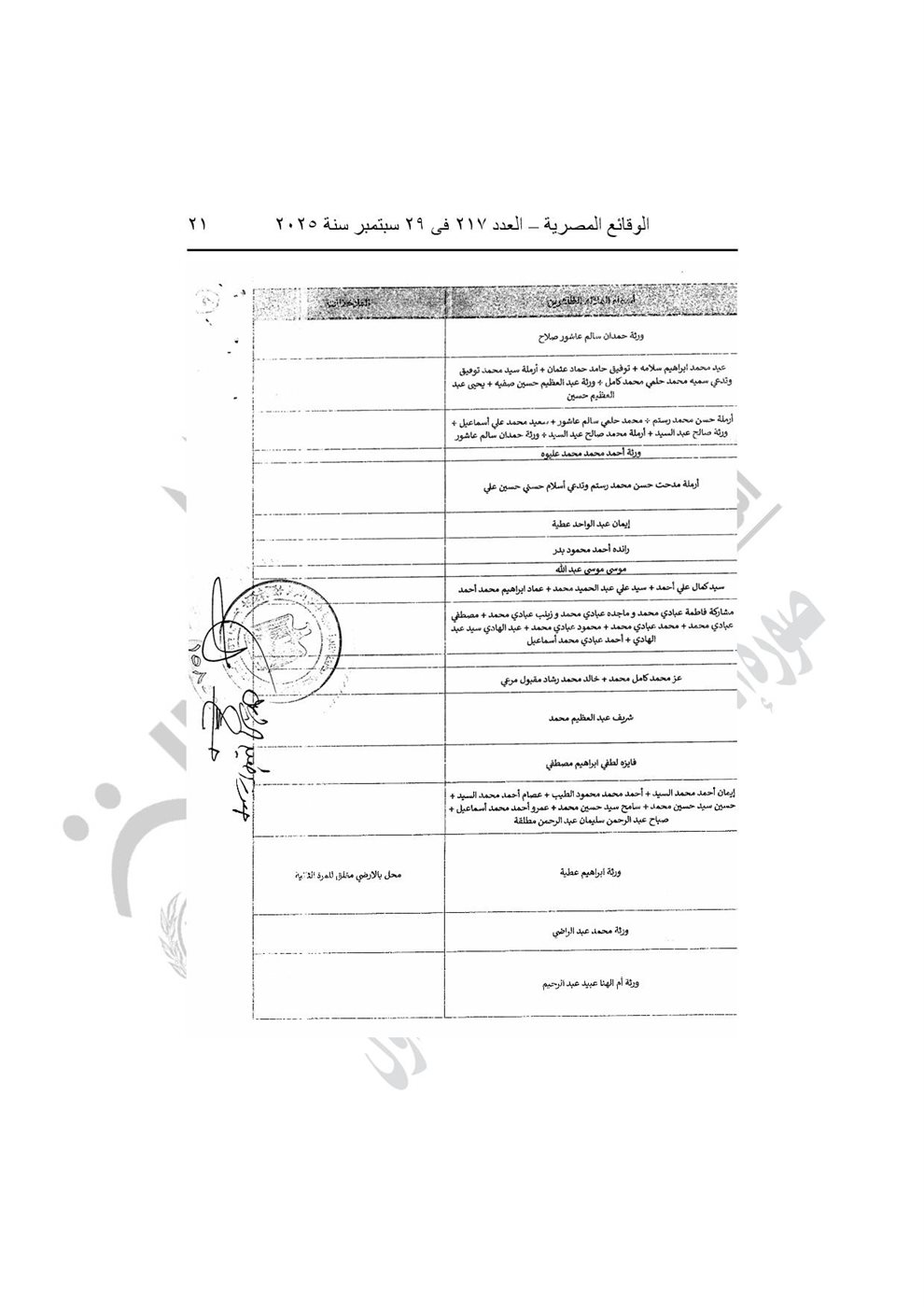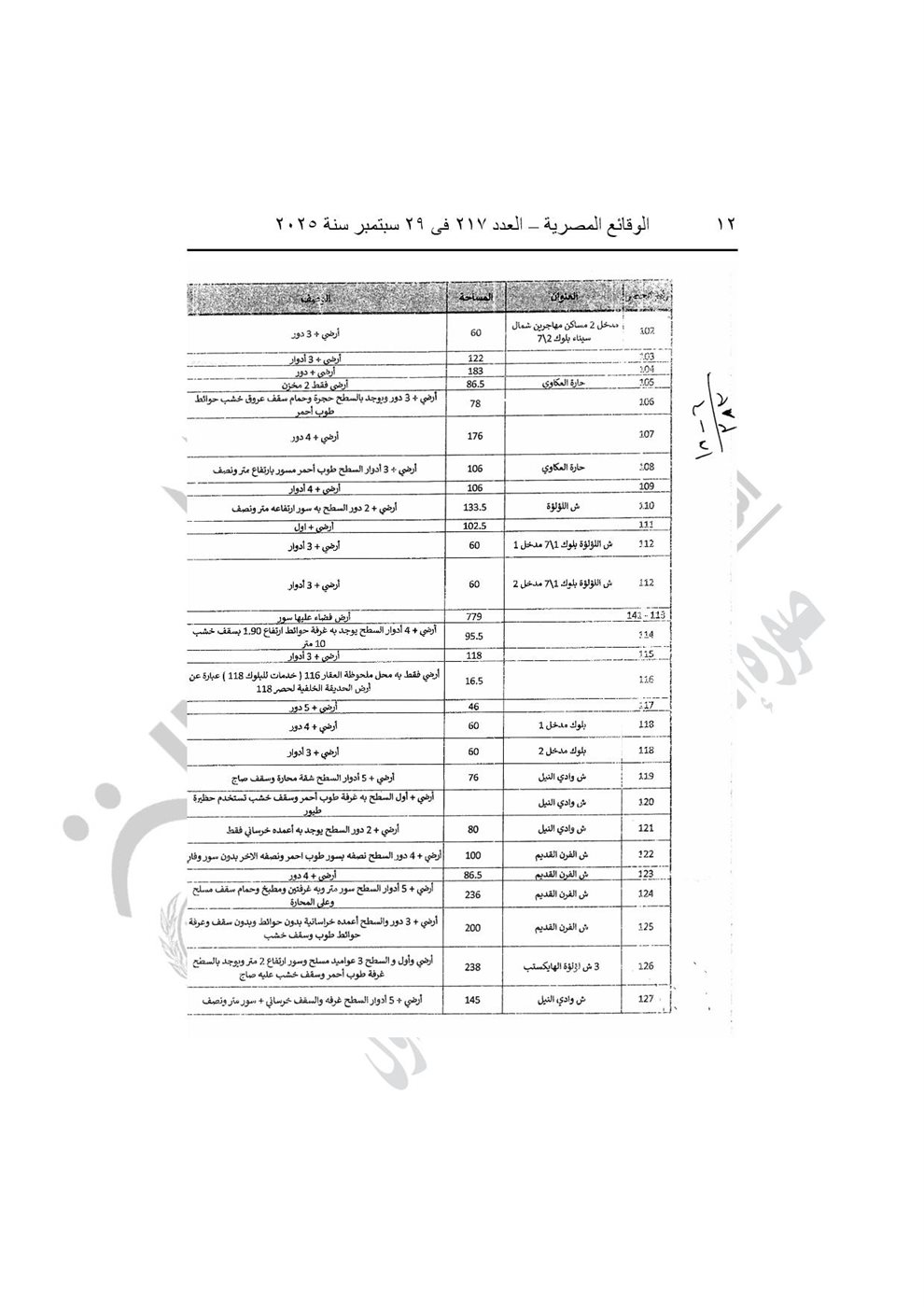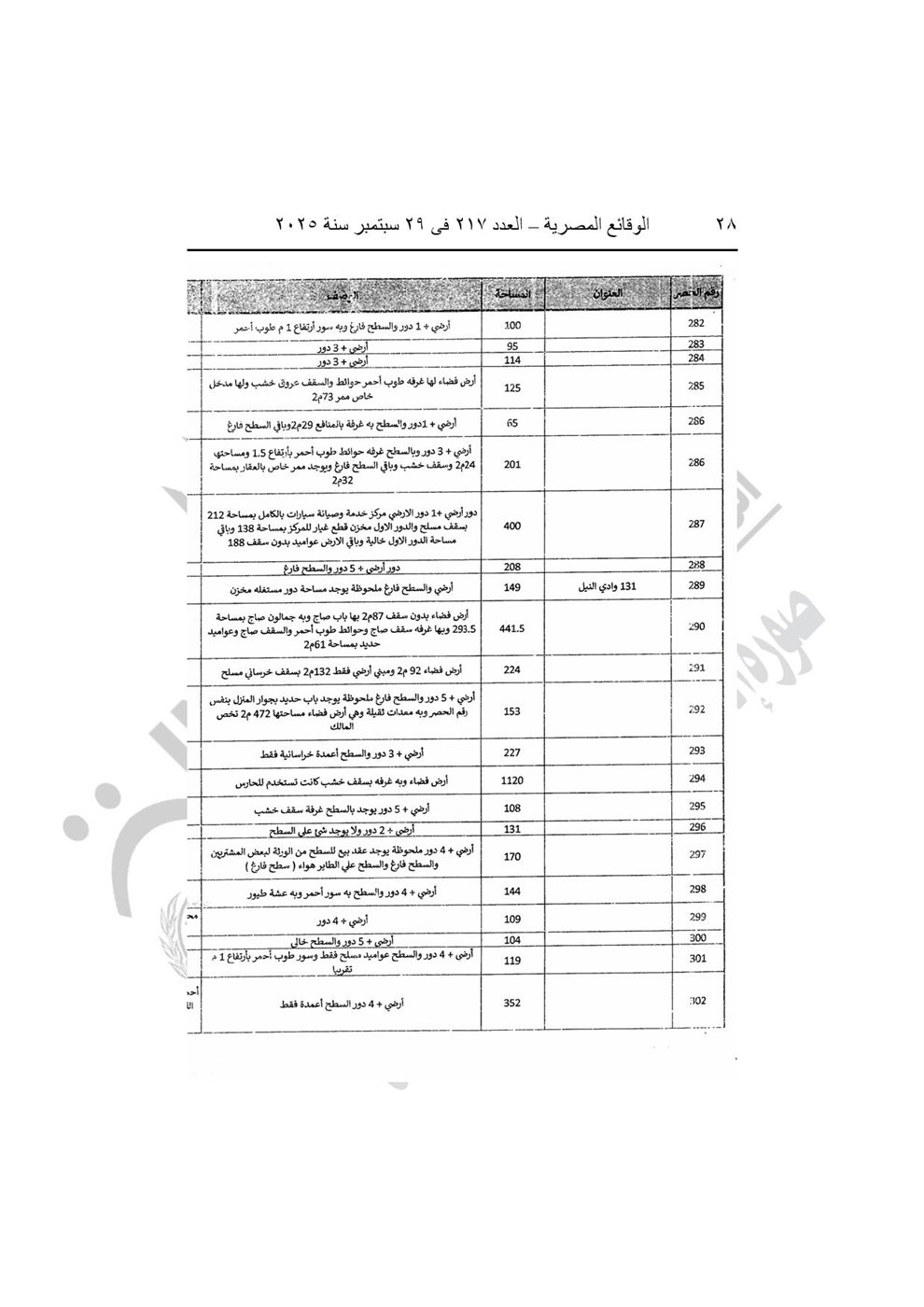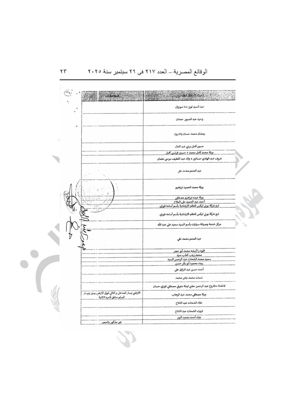 نشرت جريدة الوقائع المصرية في عددها رقم 217، الصادر في 29 سبتمبر 2025، قرار وزارة التنمية المحلية رقم 383 لسنة 2025، بشأن نزع ملكية العقارات والأراضى الصادر بشأنها قرار رئيس مجلس الوزراء رقـم 4683 لسنة 2023، موضحة كشوف حصر أسماء الملاك الظاهرين.
