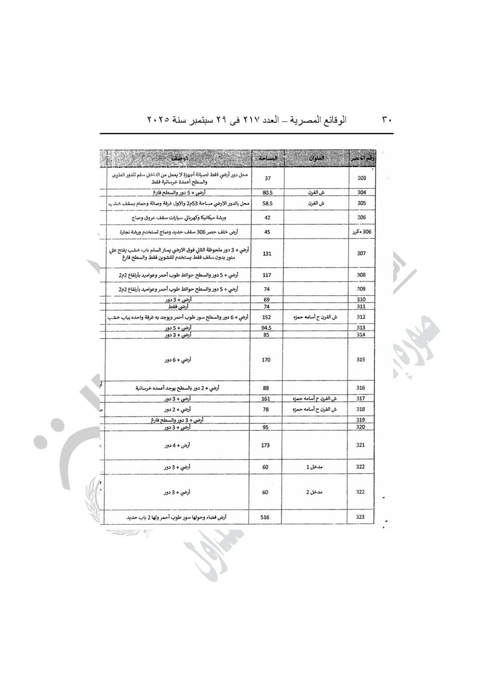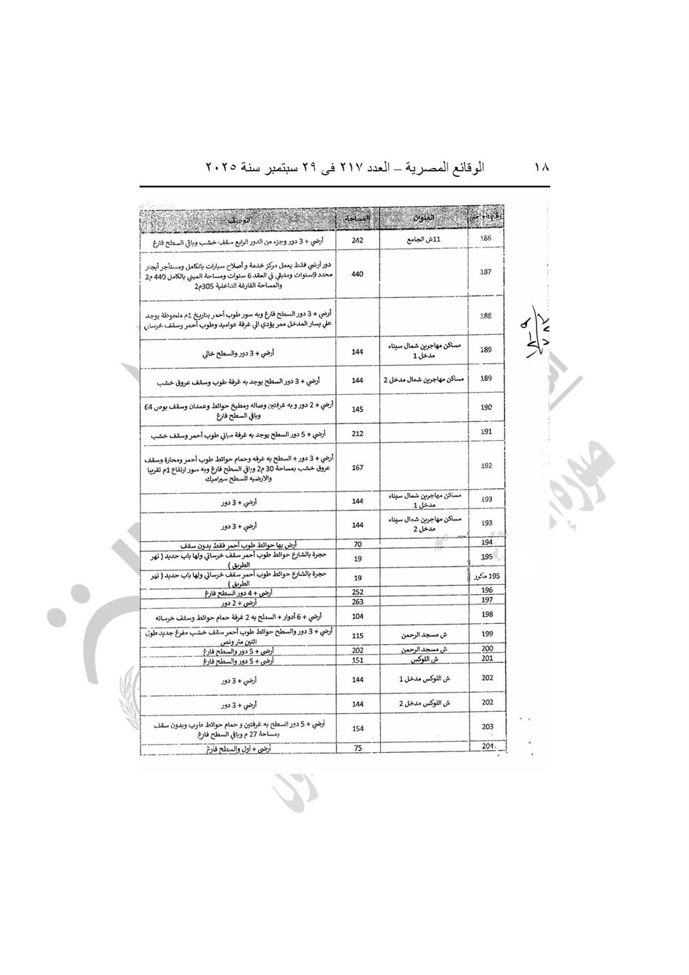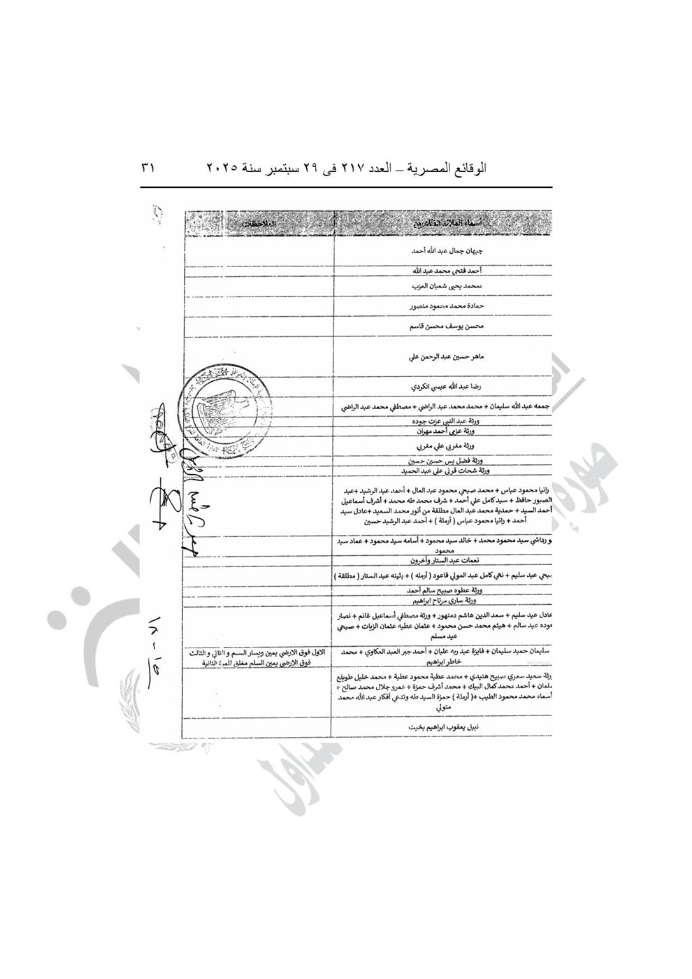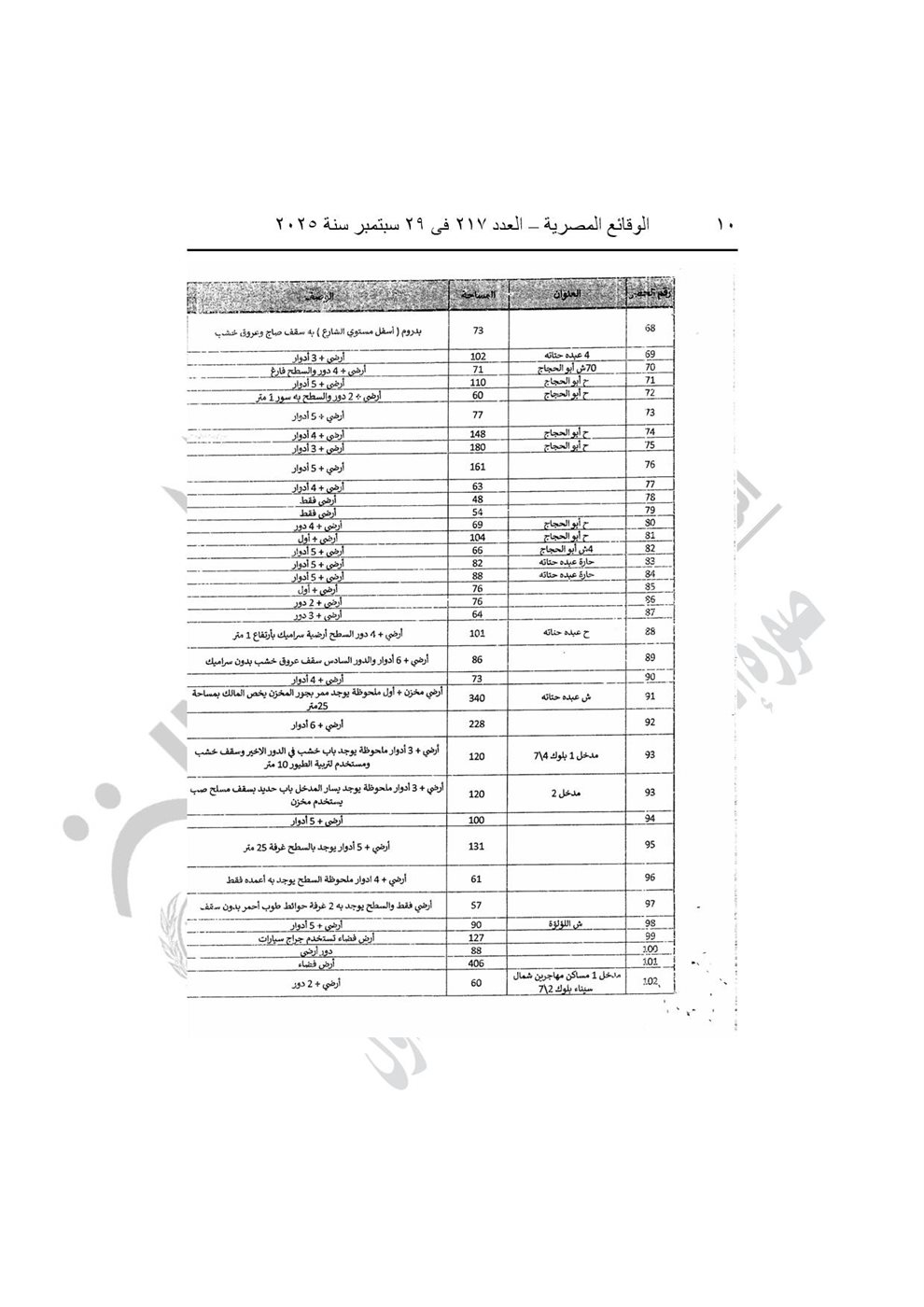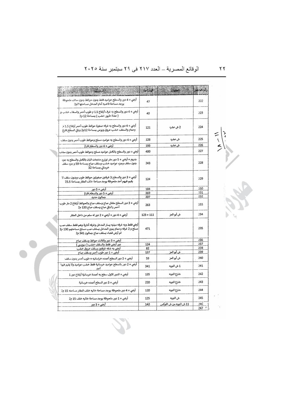 نشرت جريدة الوقائع المصرية في عددها رقم 217، الصادر في 29 سبتمبر 2025، قرار وزارة التنمية المحلية رقم 383 لسنة 2025، بشأن نزع ملكية العقارات والأراضى الصادر بشأنها قرار رئيس مجلس الوزراء رقـم 4683 لسنة 2023، موضحة كشوف حصر أسماء الملاك الظاهرين.