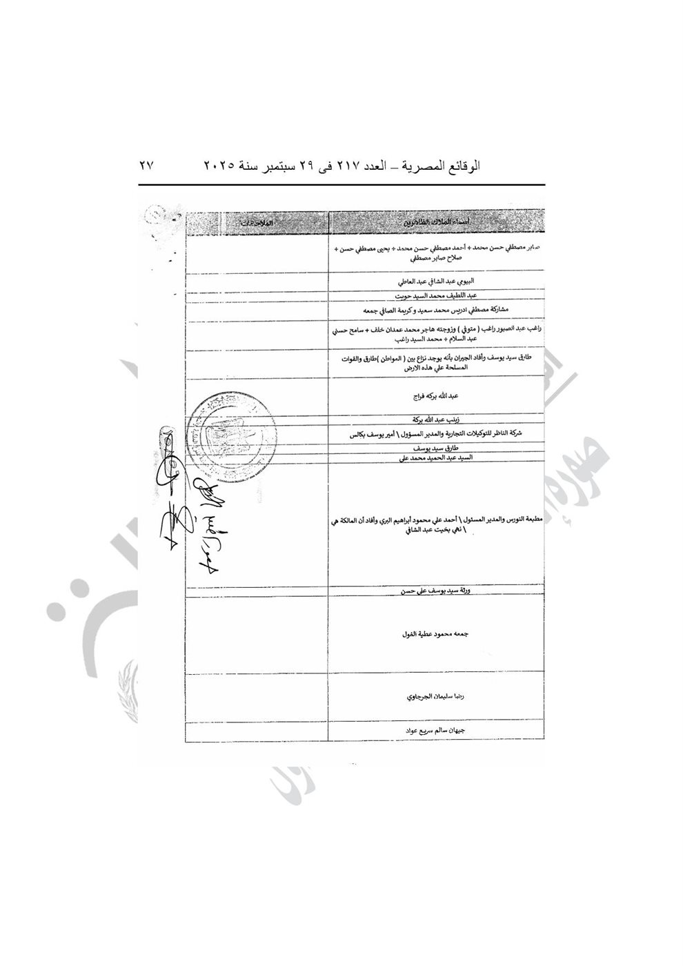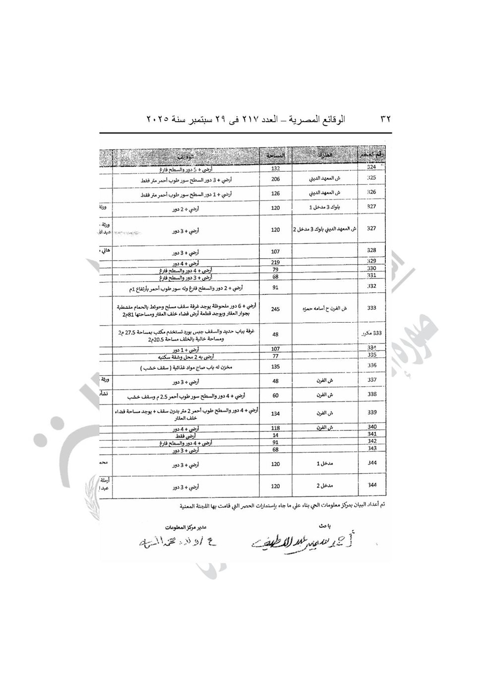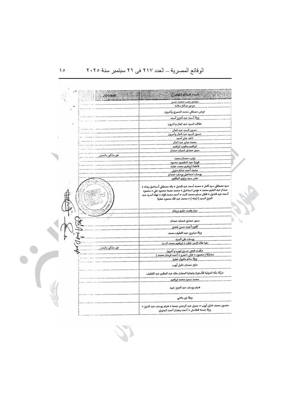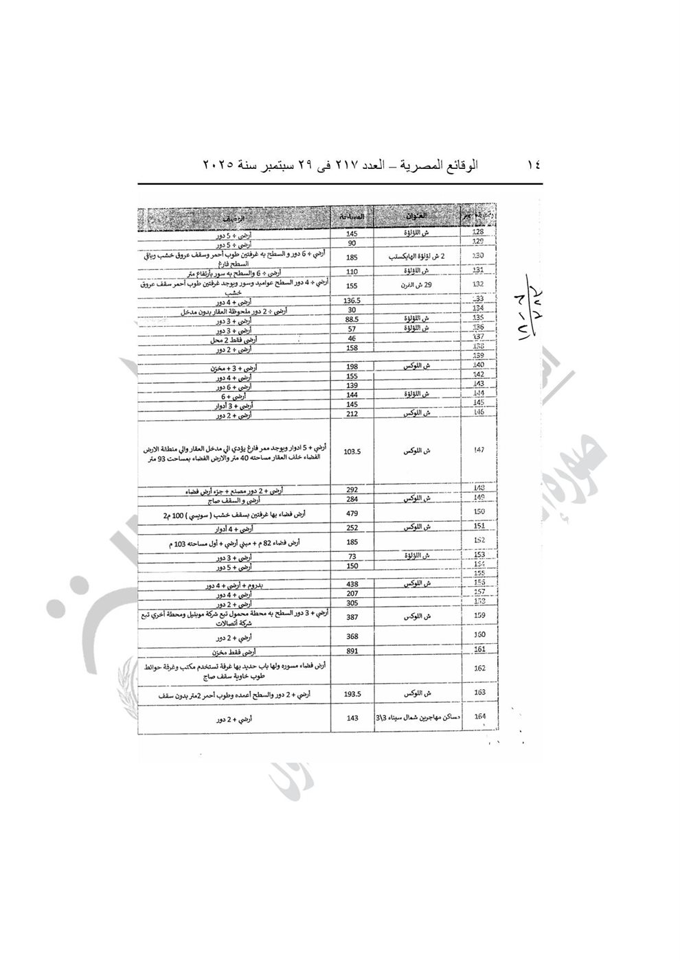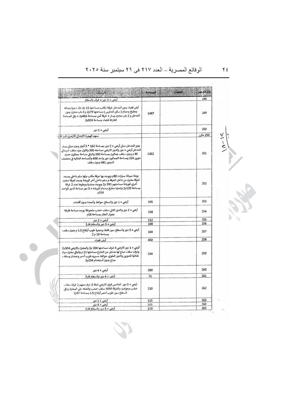 نشرت جريدة الوقائع المصرية في عددها رقم 217، الصادر في 29 سبتمبر 2025، قرار وزارة التنمية المحلية رقم 383 لسنة 2025، بشأن نزع ملكية العقارات والأراضى الصادر بشأنها قرار رئيس مجلس الوزراء رقـم 4683 لسنة 2023، موضحة كشوف حصر أسماء الملاك الظاهرين.