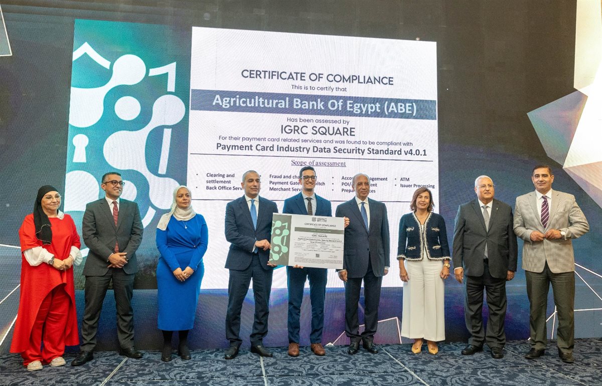 وتُمثل شهادة التوافق مع المعايير الدولية لأمن المعلومات وصناعة بطاقات الدفع (PCI-DSS)، اعترافًا دوليًا من قبل كبرى المؤسسات المالية العالمية مثل فيزا وماستركارد وغيرها، بقدرة البنك الزراعي المصري على تقديم خدمات مالية آمنة وموثوقة، وتلبية احتياجات العملاء المصرفية وفق أعلى مستويات الجودة ومعايير الأمان، مما يقلل من مخاطر الاختراقات والاحتيال والسرقات الإلكترونية، كما أنها تمثل أداة استراتيجية تُعزز من مكانة البنك في القطاع المصرفي، تماشيًا مع متطلبات البنك المركزي المصري، للتوافق مع معايير الأمن السيبراني.