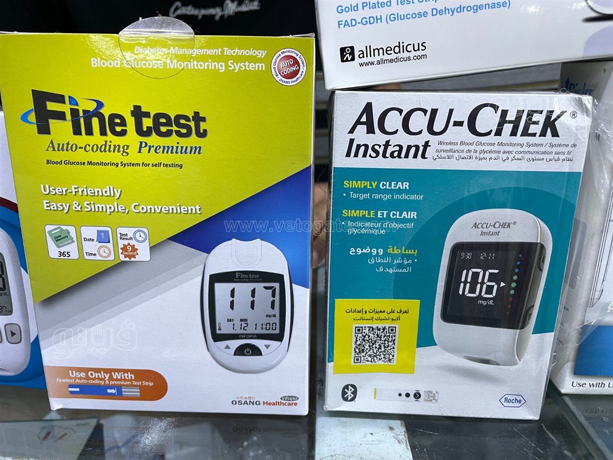 - Gluco Doctor Auto (تايواني): جهاز محترم بضمان، مرفق معه 25 شريطا، بسعر 400 جنيه مصري.