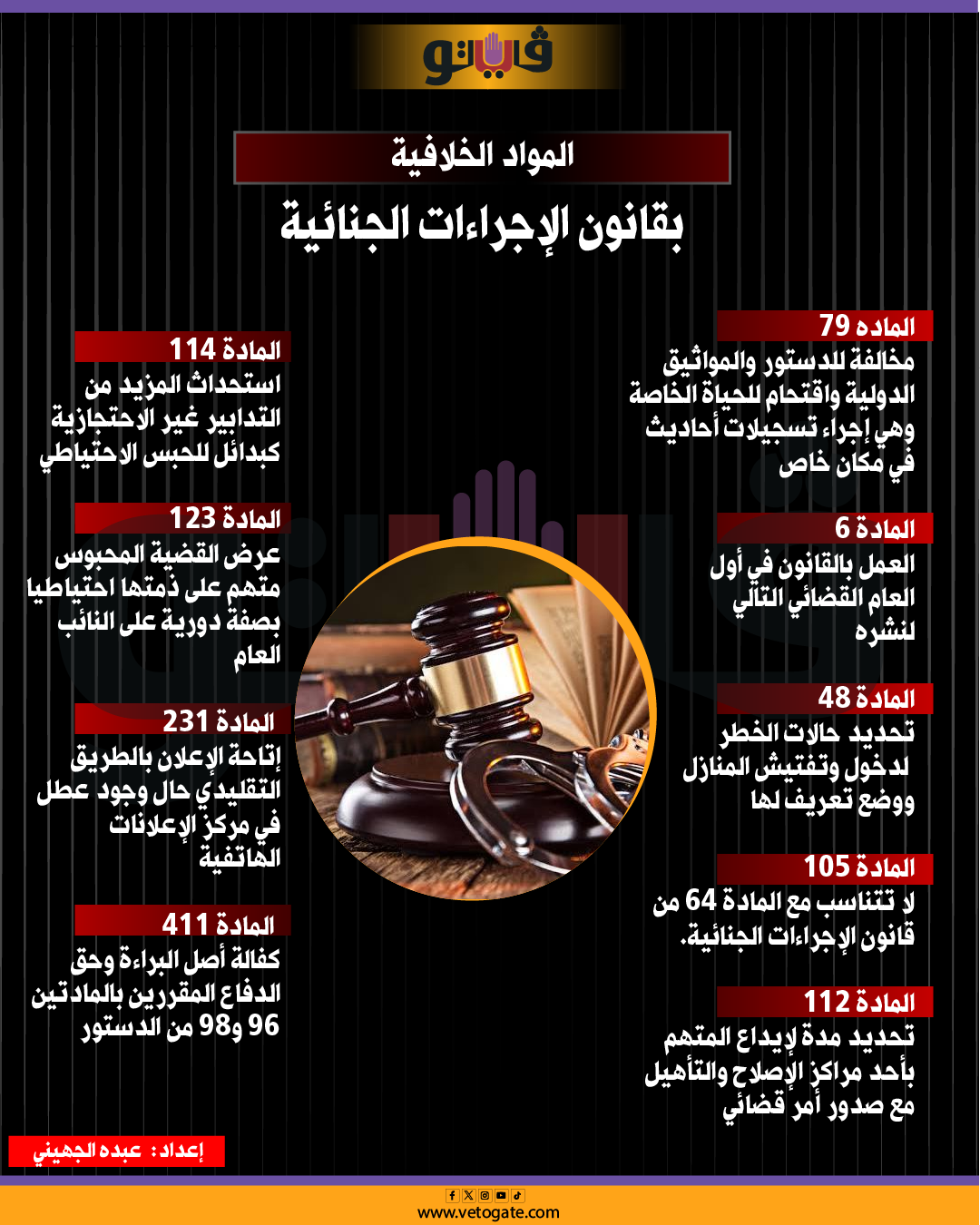 المواد الخلافية بقانون الإجراءات الجنائية (إنفوجراف)