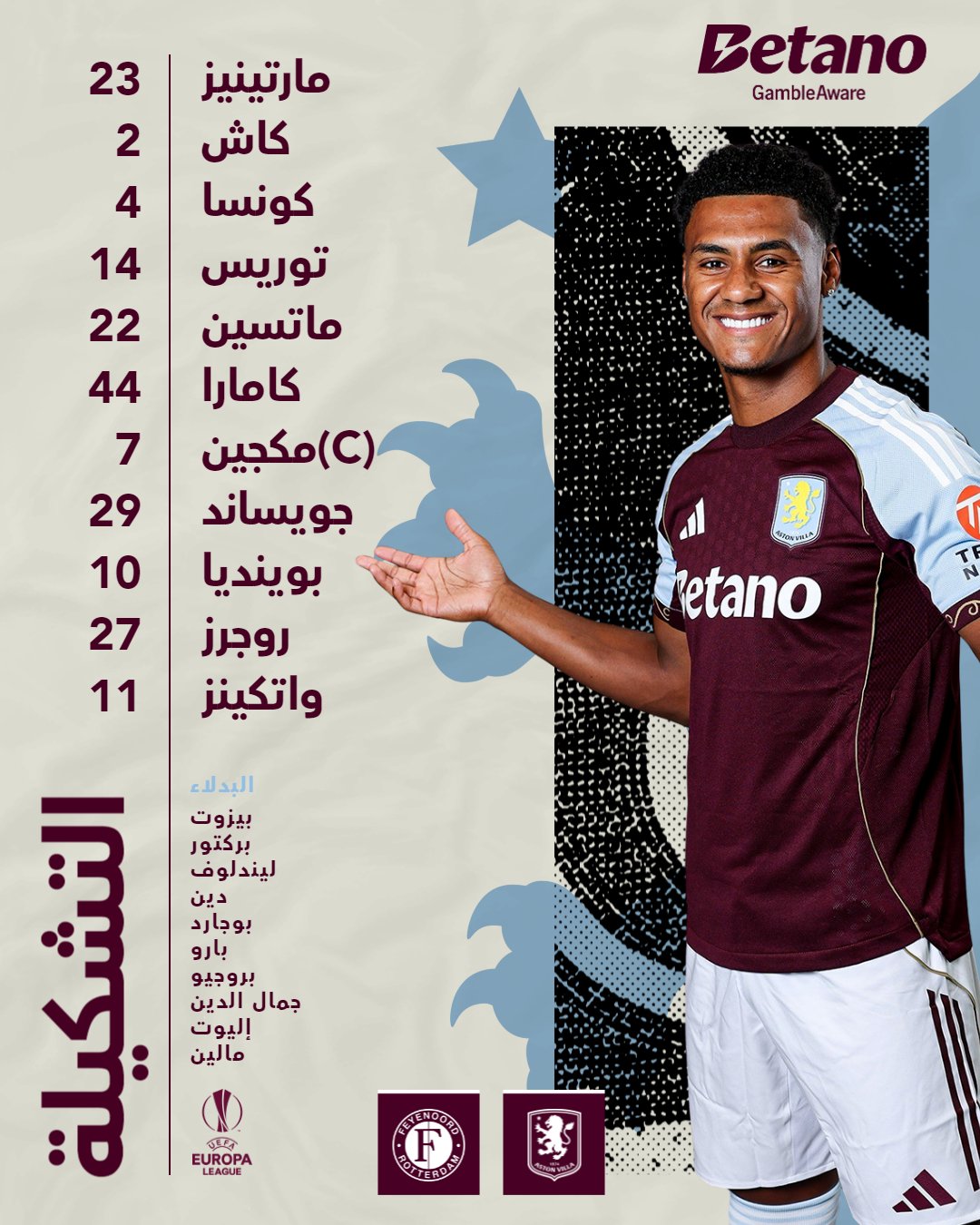 تشكيل أستون فيلا أمام فينورد