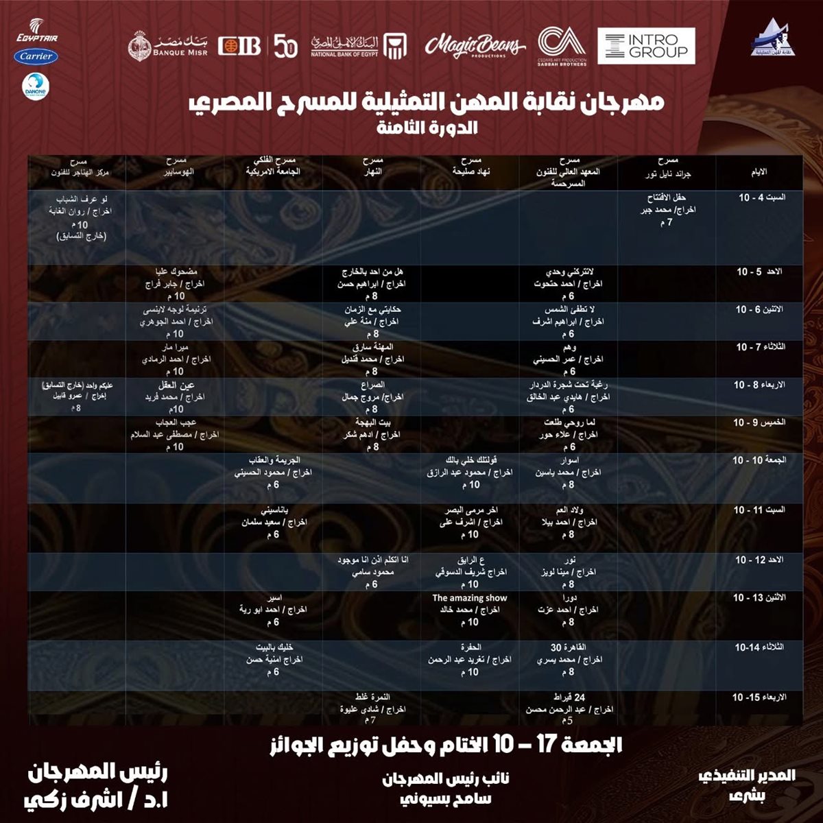 جدول عروض مهرجان نقابة المهن التمثيلية للمسرح المصري