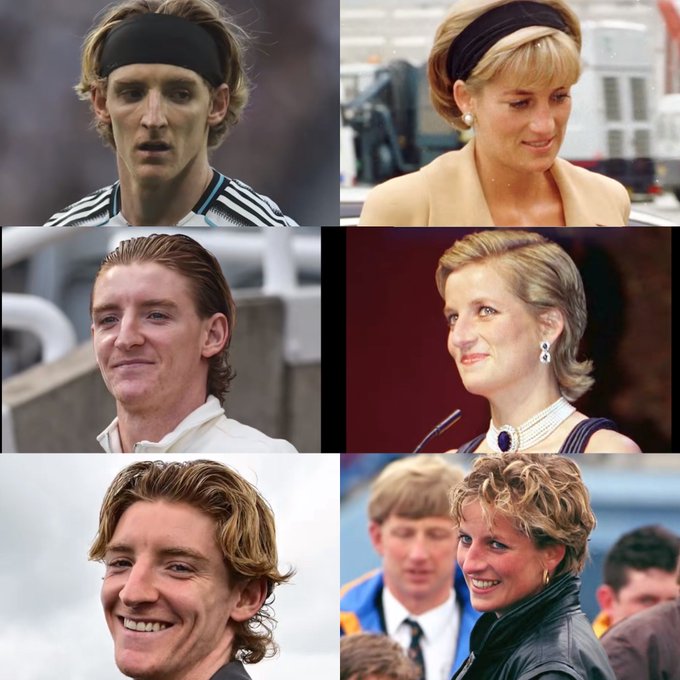 ونقلت صحيفة "ديلي ميل" البريطانية صورًا من تسريحات الأميرة ديانا وأخرى لمظهر نجم نيوكاسل ومنتخب إنجلترا أنتوني جوردون مؤكدة أن هناك سمة واحدة مدهشة تجمع بينهما: شعرهما الرائع.