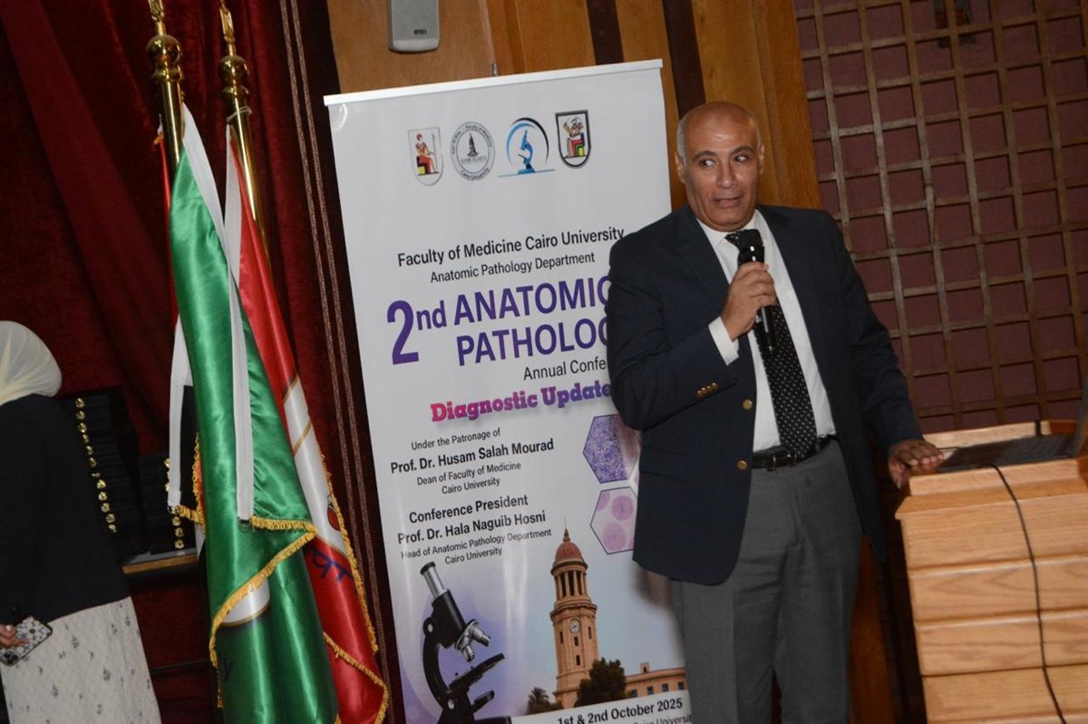 وفي كلمته الافتتاحية، أكد الدكتور عمر عزام حرص الكلية على دعم كافة الأقسام الأكاديمية والبحثية بما يعزز دور قصر العيني في خدمة المريض والمجتمع، مثمنًا ما يحققه قسم الباثولوجي من إنجازات متتابعة في مجال التشخيص والبحث العلمي.