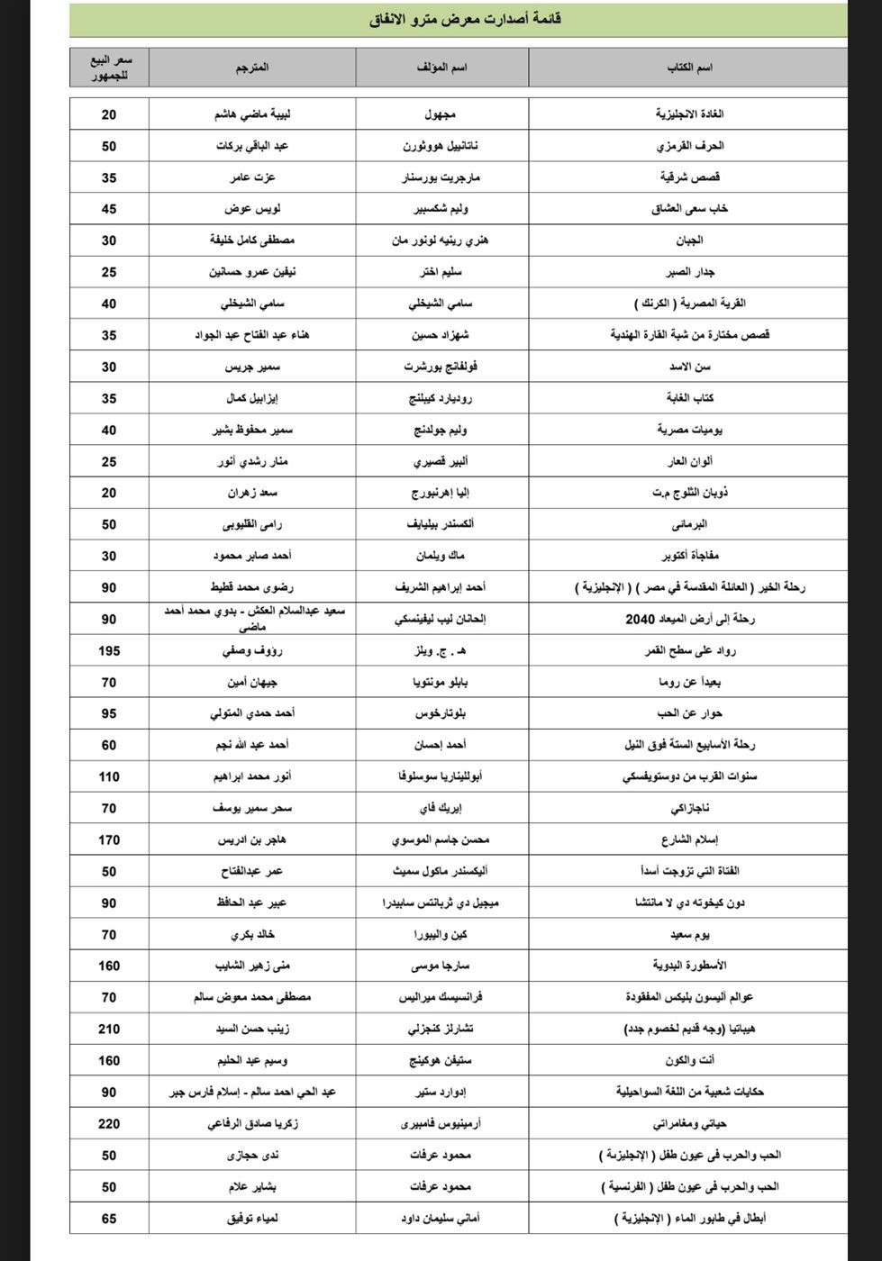 يشارك المركز القومي للترجمة برئاسة الدكتورة رشا صالح في أول معرض للكتاب في محطة مترو الأوبرا ابتداءًا من اليوم الأحد ٥ أكتوبر وحتى الثلاثاء الموافق ٧ أكتوبر ٢٠٢٥.