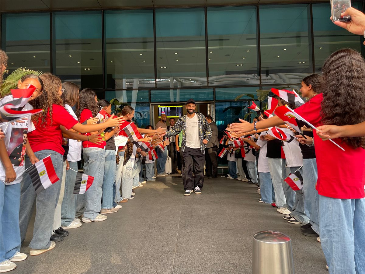 استقبال حافل لمحمد صلاح بمطار القاهرة قبل انضمامه لمعسكر المنتخب (صور)