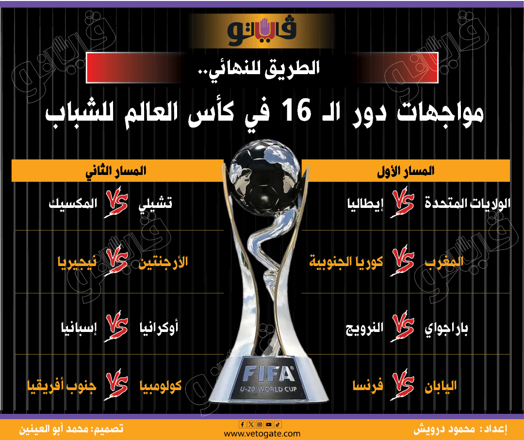 الطريق للنهائي.. مواجهات دور الـ 16 في كأس العالم للشباب (إنفوجراف)