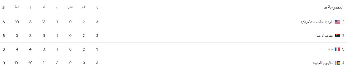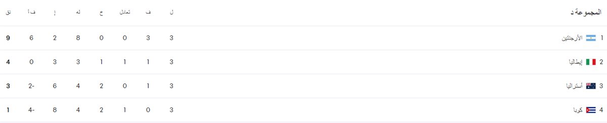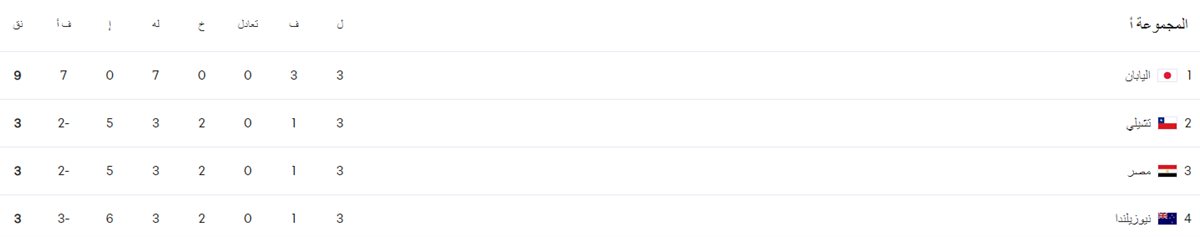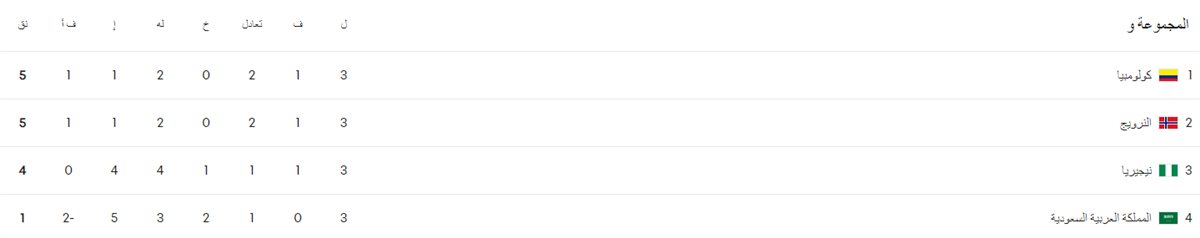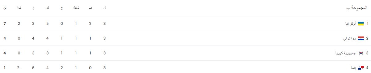 ترتيب المجموعة الخامسة في مونديال الشباب