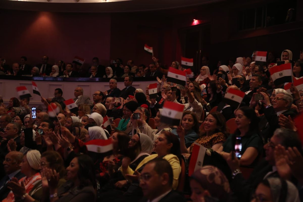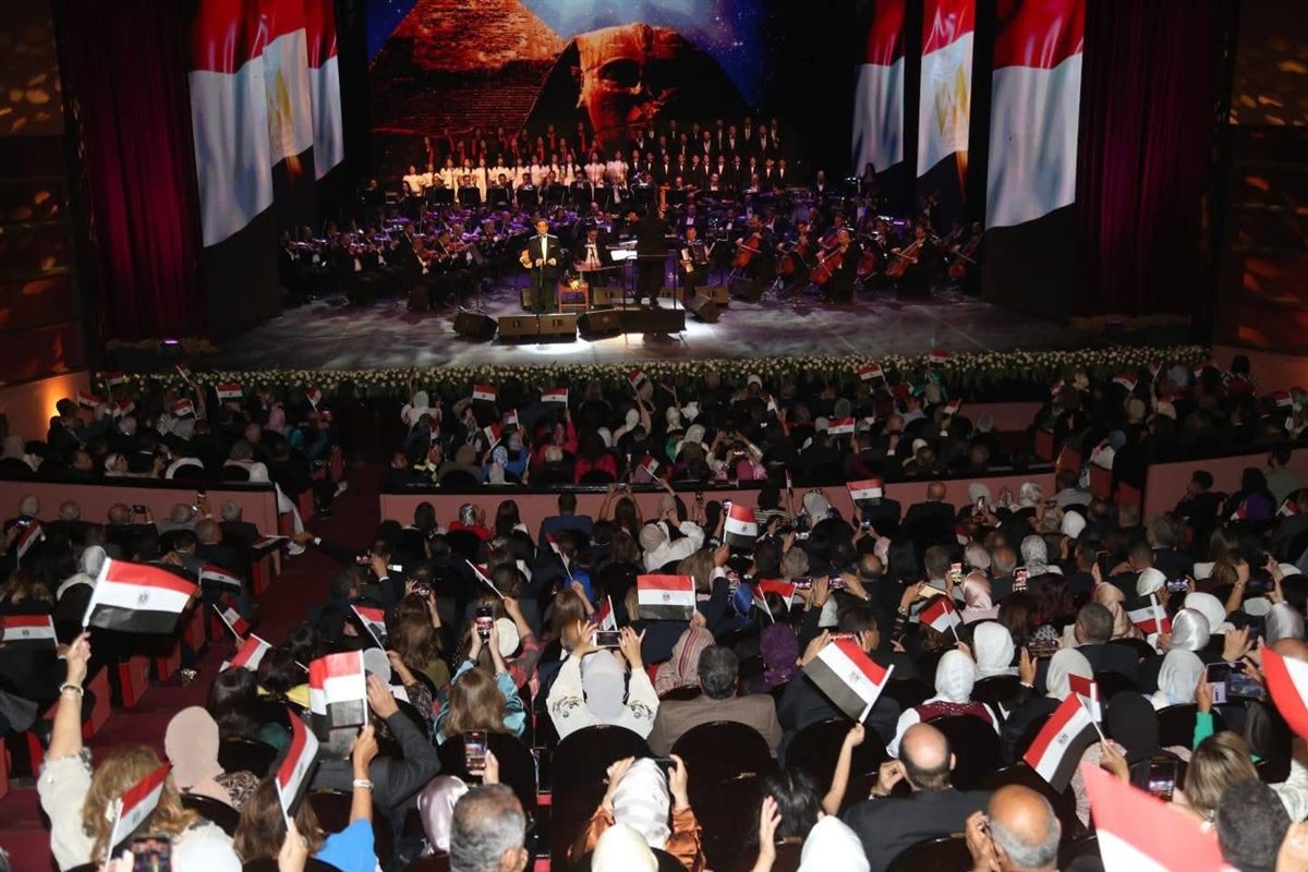 وخلالهاارتفعت رايات العزة والفخر فى المسرح الكبير ومع الموسيقى الوطنية المدموغة بروح النصر العظيم استلهمت عصا القيادة فى يد المايسترو الدكتور علاء عبد السلام الأمجاد والبطولات ووجهت المشاركين من فنانين وعازفين لتتدفق النغمات فى إنضباط وإنسجام وترتسم لوحة إبداعية تعكس عظمة أمة قهرت المستحيل جملتها أبياتًا من ابداعات الشاعر جمال بخيت وأصوات كوكبة من نجوم مصر هم محمد ثروت، محمد الحلو، هانى شاكر ومن مطربى الموسيقى العربية بالأوبرا وليد حيدر، رحاب عمر، محمد حسن، غادة آدم، حسام حسنى، حنان عصام لتُضاء القلوب بذكريات ملحمة العبور وتنبض الألحان بتاريخ محفور فى الذاكرة وتتعالى فى جنبات منصة العرض تراتيل الوفاء للوطن والتى عبرت عنها أعمال السلام الوطنى، خلى السلاح صاحى، أوبريت الأرض الطيبة، يا بوى يا مصر، أهيم شوقًا، مصر يا أول نور فى الدنيا، يا حبيبتى يا مصر، كل بلاد الدنيا جميلة، عاشت بلادنا، يا أغلى إسم، وانت ماشى فى مصر، مصر هى أمى، بالأحضان، دويتو بلدى، احلف بسماها وصاحبها مشاهد فيلمية ووثائقية حكت قصة العبور العظيم من لحظات التحدي إلى ساعة النصر وأخرجها مهدى السيد.