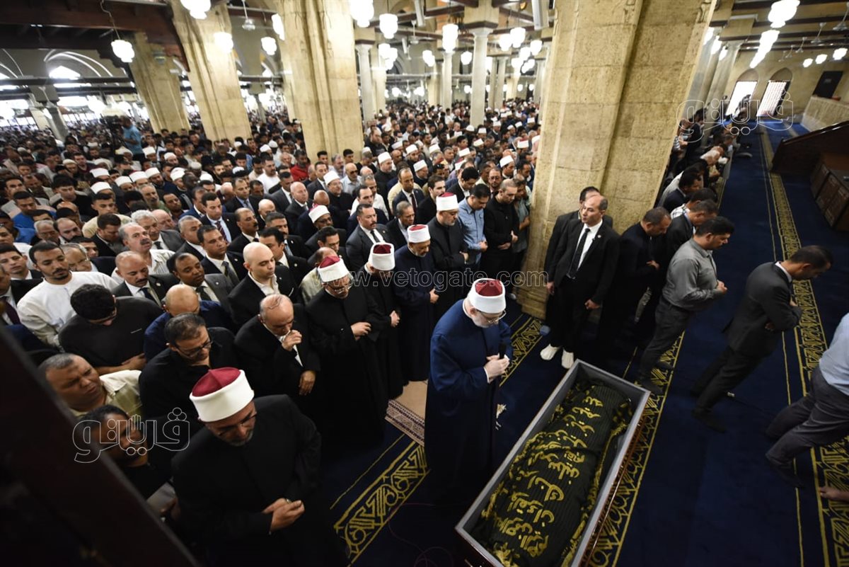 وفي وقت سابق وصل جثمان الفقيد إلى الجامع الأزهر استعدادًا لأداء صلاة الجنازة بعد صلاة الظهر، حيث شارك في توديع الفقيد كبار العلماء وممثلو المؤسسات الدينية والأكاديمية، بالإضافة إلى ممثلين عن الأزهر وطلابه الذين توافدوا بأعداد كبيرة لتوديعه وقراءة الفاتحة على روحه. وتمت مراعاة وصية الراحل؛ إذ أُشيع أنه رُكّب الكفن على نقوشٍ وأُمورٍ خاصة طبقًا لرغبته.