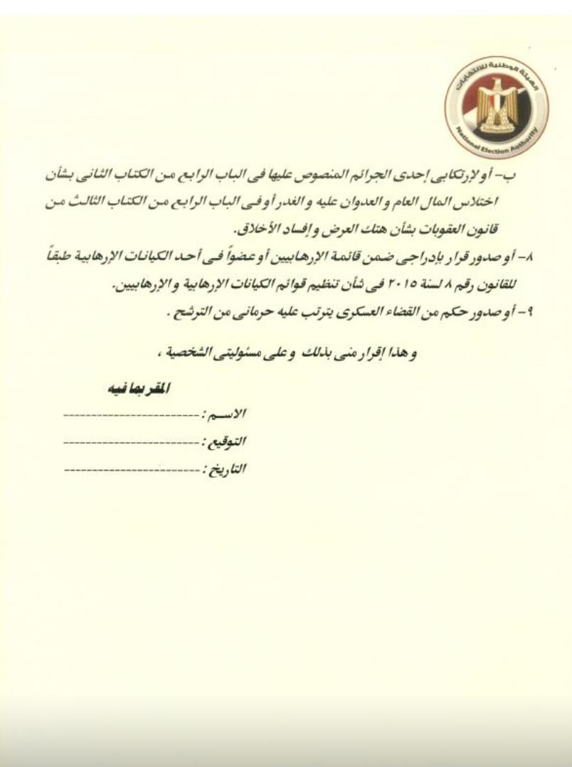 نموذج الإقرار القانوني للمرشحين لانتخابات مجلس النواب ( صورة )