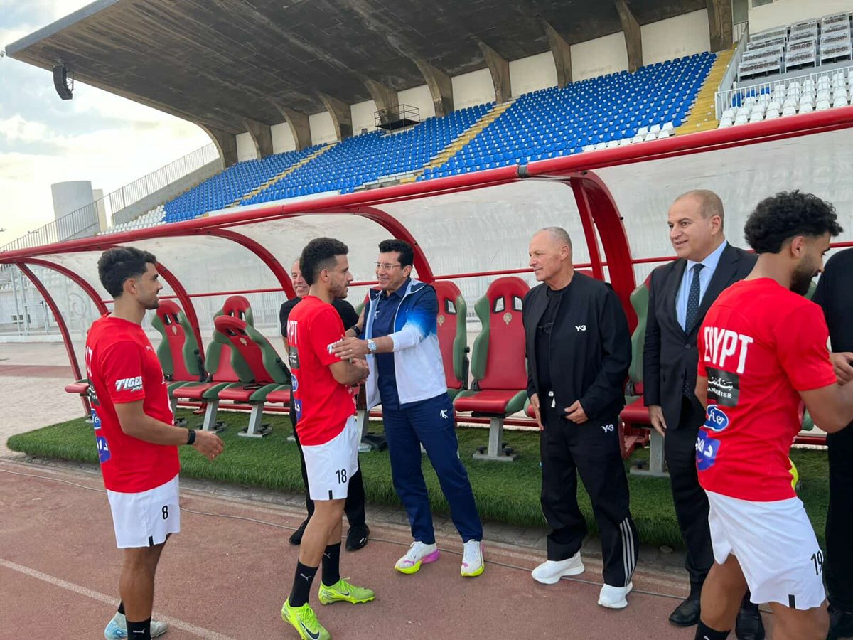 فور وصوله المغرب، أشرف صبحي يحضر مران منتخب مصر الرئيسي قبل مواجهة جيبوتي