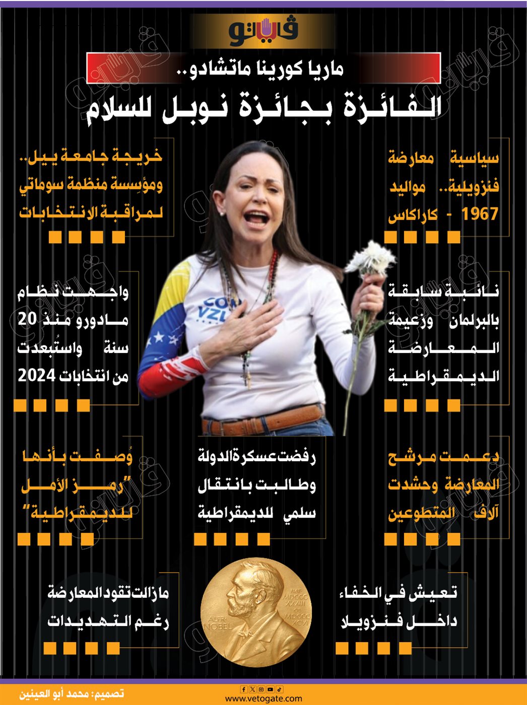 ماريا كورينا ماتشادو.. الفائزة بجائزة نوبل للسلام (إنفوجراف)