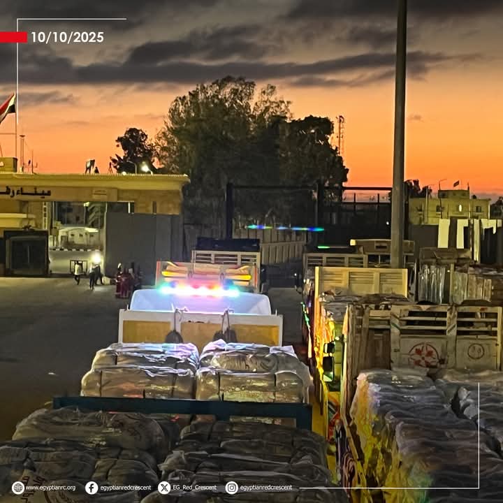 دفع الهلال الأحمر المصري، صباح اليوم، قافلة « زاد العزة.. من مصر إلى غزة» الـ 48، والتي تحمل عددا من شاحنات المساعدات الإنسانية العاجلة في اتجاه قطاع غزة، وذلك في إطار جهوده المتواصلة كآلية وطنية لتنسيق المساعدات إلى غزة.