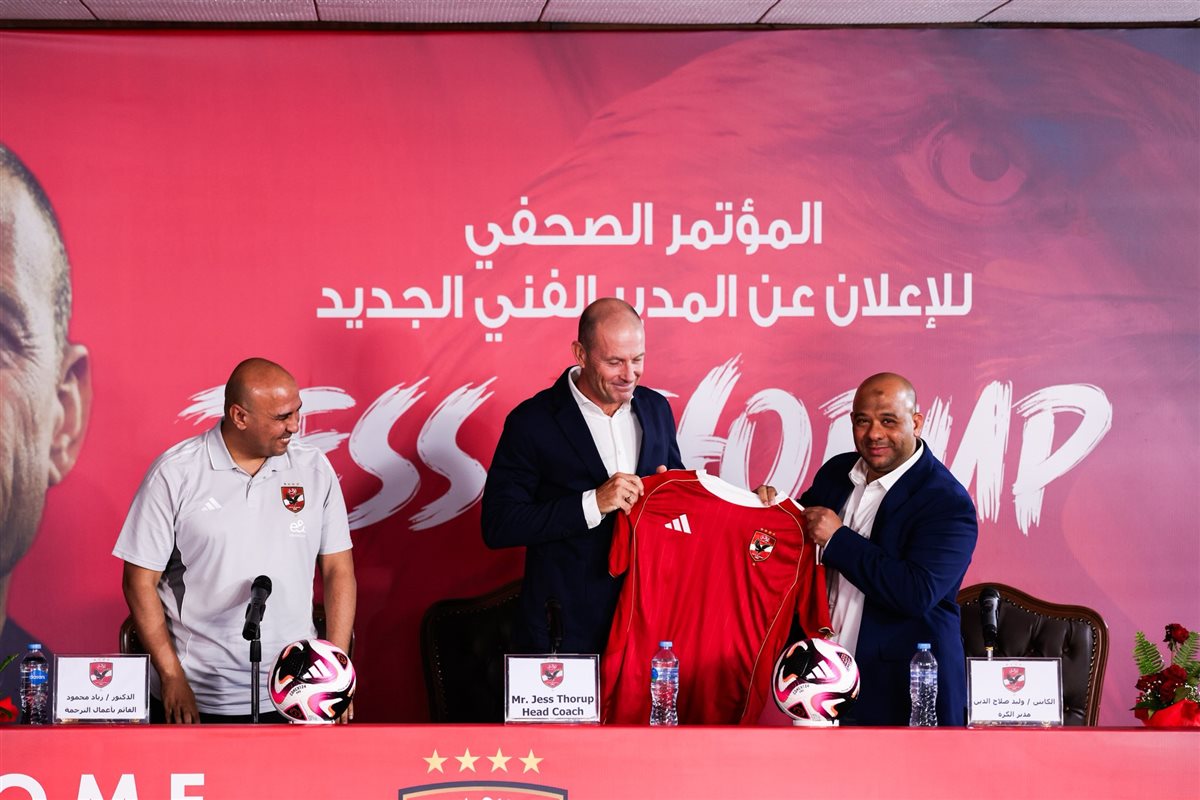عقد النادي الأهلي، اليوم، مؤتمرًا صحفيًّا بمقر القلعة الحمراء بالجزيرة، لتقديم الدنماركي ياس سوروب، المدير الفني الجديد للفريق الأول لكرة القدم بالنادي، إلى وسائل الإعلام، وذلك بعد الإعلان رسميًّا عن التعاقد معه لمدة عامين ونصف.
