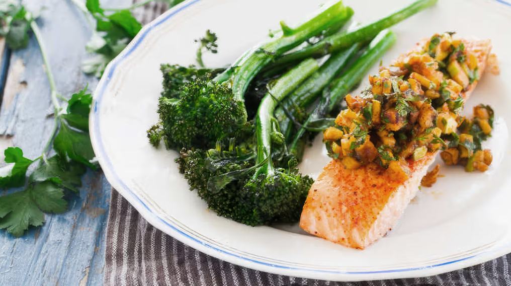 3. السلمون بقشرة التفاح والجوز والبروكلي المشوي