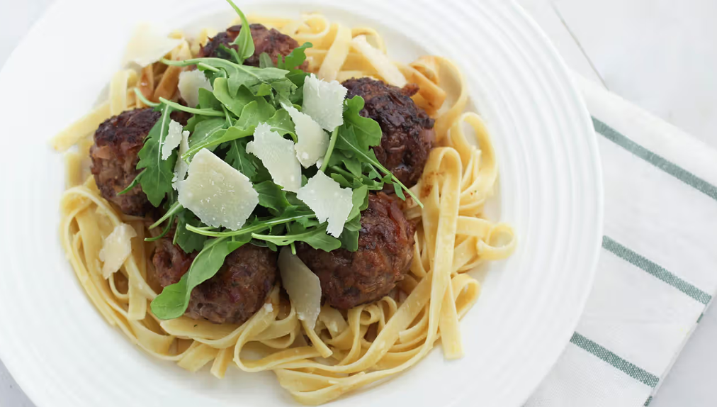 4. كرات لحم الضأن والتفاح وإكليل الجبل مع باستا لينجويني