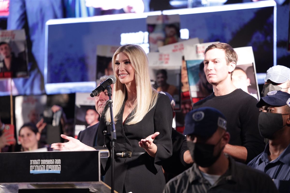 قالت إيفانكا نجلة الرئيس الأمريكي دونالد ترامب مساء اليوم السبت في كلمة من ميدان في تل أبيب: "صفحة جديدة تفتح على سلام دائم".