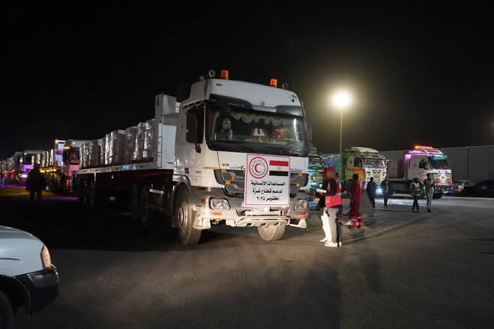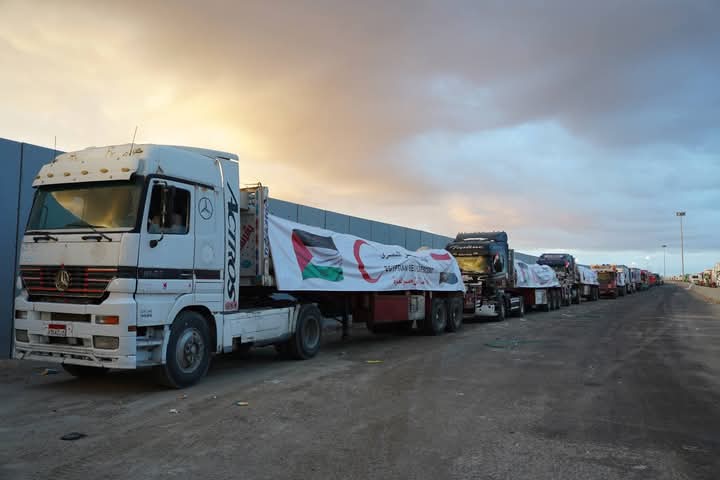 مع الدقيقة الأولى من صباح تنفيذ اتفاق وقف النار، رفع الهلال الأحمر المصري درجة الاستعداد القصوى داخل مراكزه اللوجيستية في العريش، لتفويج أكبر عدد من الشاحنات، اليوم، والتي بلغ عددها 400 شاحنة محملة بالمساعدات الإنسانية من مصر إلى غزة.