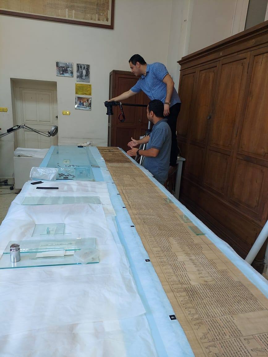 ويجري عمليات التوثيق بالتقنيات البصرية والتحليلية كاستخدام التصوير متعدد الأطياف والتصوير المقطعي للبرديات الملفوفة، مما يتيح قراءة النصوص وفهم الهيكل دون فك قسري.