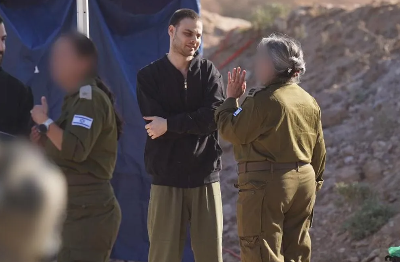 وثقت مجموعة من الصور، الظهور الأول لعدد من الأسري الإسرائيليين بعد قيام الصليب الأحمر الدولي بتسلمهم من قطاع غزة وتسليمهم لجيش الاحتلال.
