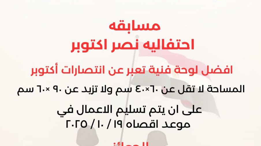 وأشار إلى أن شروط المشاركة تتضمن أن يتسم العمل بالأصالة والإبداع، ويرتبط بموضوع المسابقة حول بطولات حرب أكتوبر، وألا يكون قد تم نشره أو التقدم به في مسابقات سابقة.