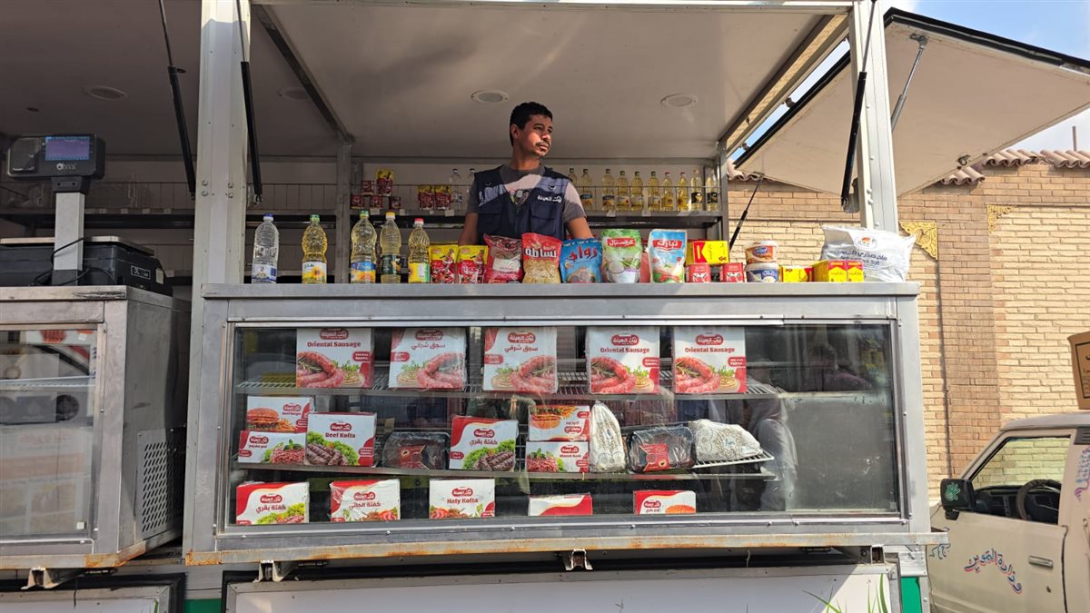 وتضم القافلة ٣٥ سيارة، لبيع كافة السلع الأساسية كالزيت والسكر والأرز والمسلى والمكرونة، والمنظفات والصابون، إلى جانب الدواجن، واللحوم، والألبان والجبن، والخضار والفاكهة، والعصائر، والعسل، والبقوليات، والبيض.