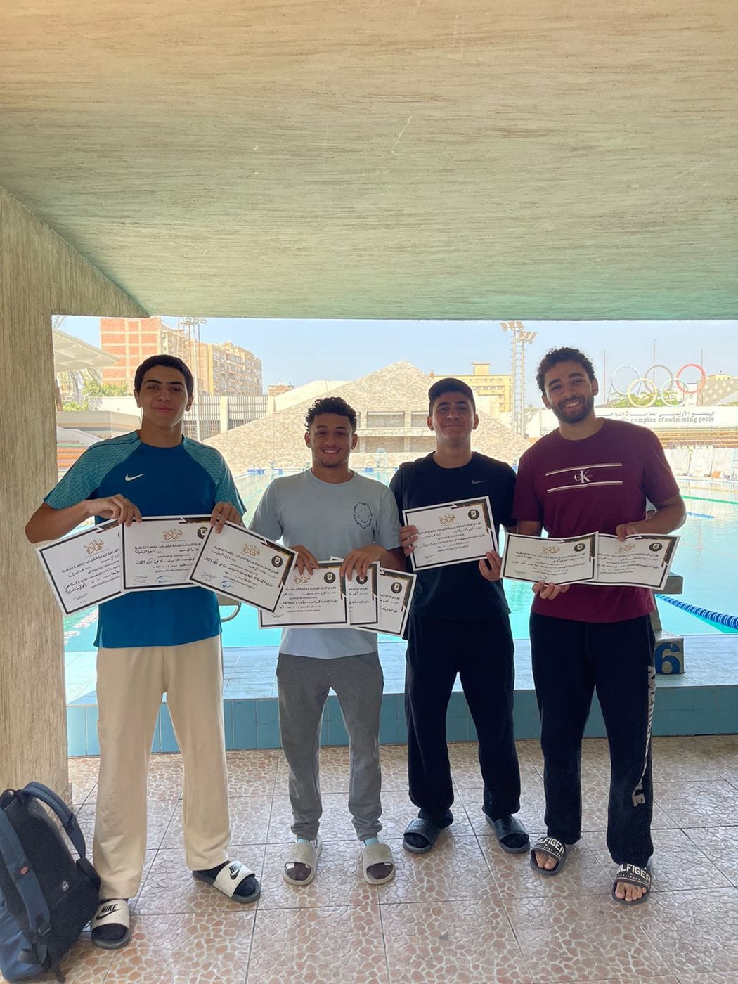 وفي السباحة طلبة، حصل أحمد حاتم حسن مركز ثانى ١٠٠صدر ومركز ثانى ٢٠٠ صدر وثالث تتابع ومعاذ وائل سيد مركز ثانى ٥٠ حره و١٠٠ حره وثالث تتابع وإياد إسماعيل كامل على مركز الثاني ٥٠ صدر وثالث تتابع، بينما جاء محمود محمد محمود بركات في المركز الثالث تتابع.