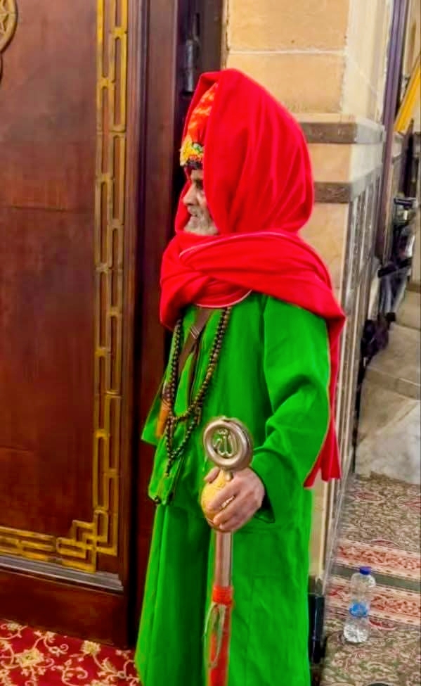 ظهر الرجل بملابس ذات ألوان لافتة وهو يردد الأدعية والأذكار وسط الزائرين لتتحول لقطته إلى "ترند" على السوشيال ميديا مصحوبة بتعليقات ساخرة ومقاطع تهكمية لكن خلف الصورة المتداولة هناك قصة إنسانية ودينية تستحق أن تُروى بعيدًا عن زوايا السخرية.