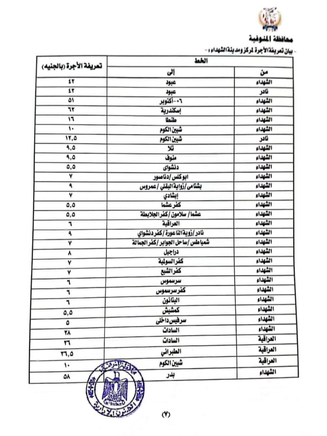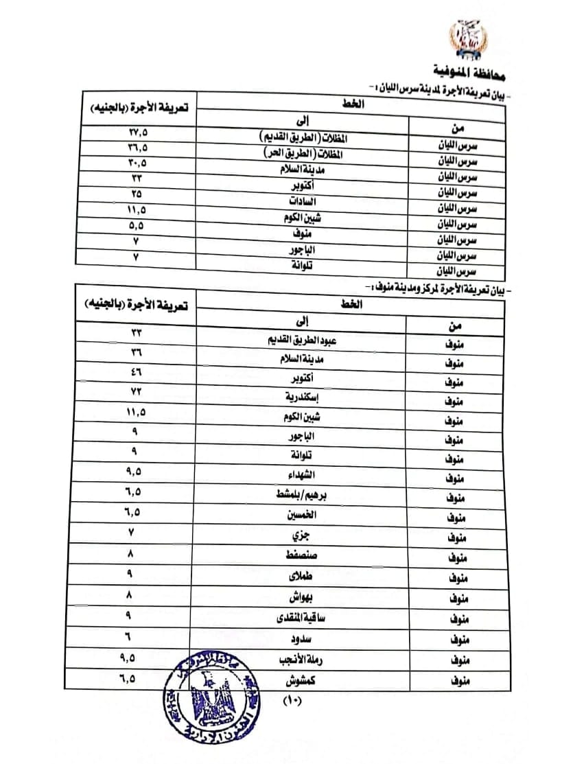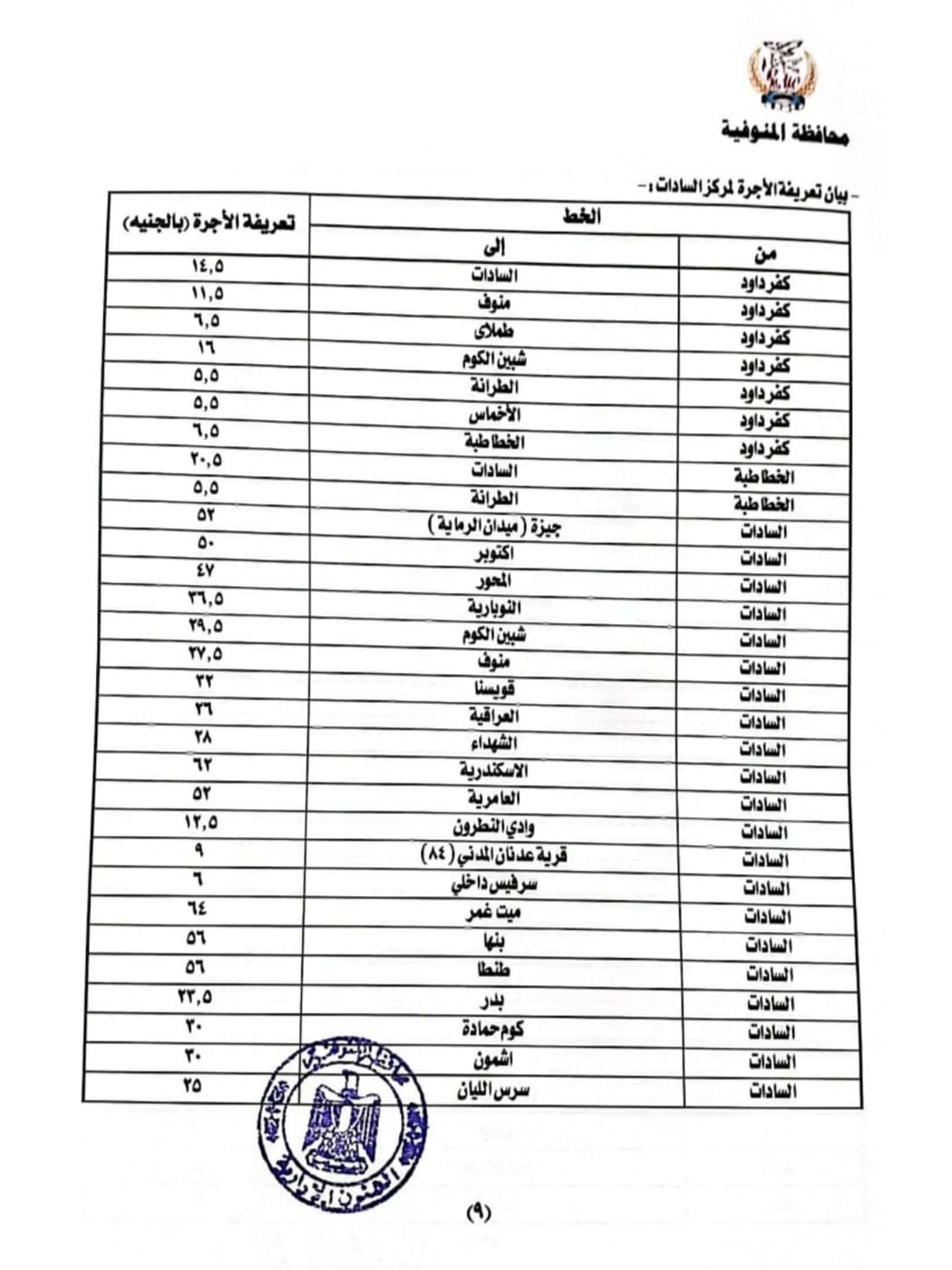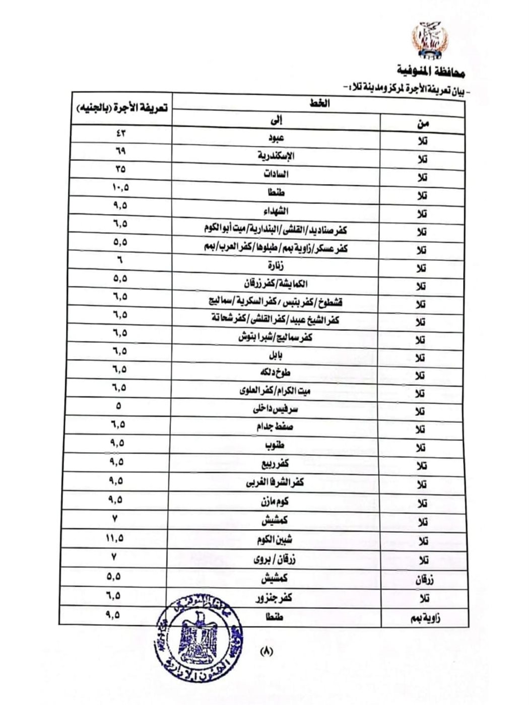 لجميع الخطوط، تعريفة الركوب الجديدة بالمنوفية بعد زيادة أسعار البنزين والسولار