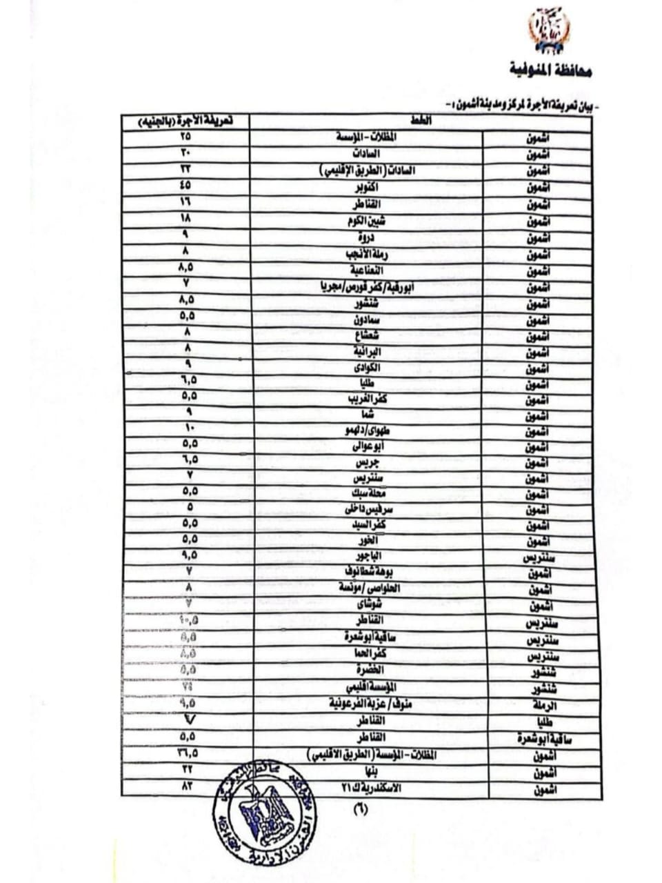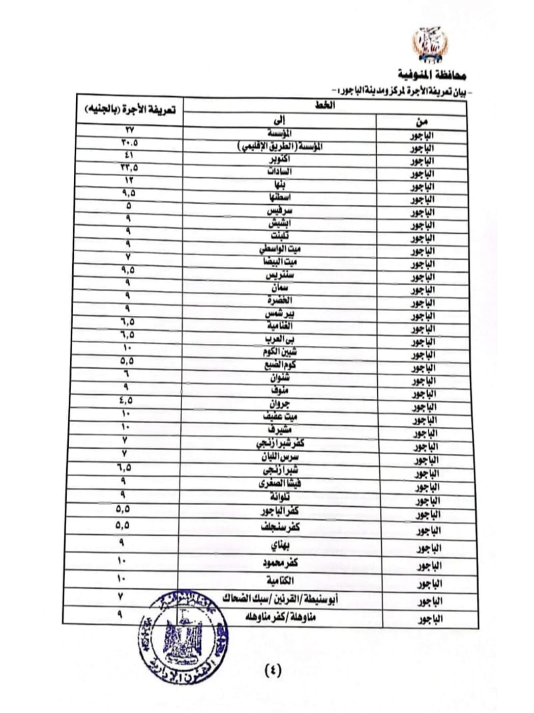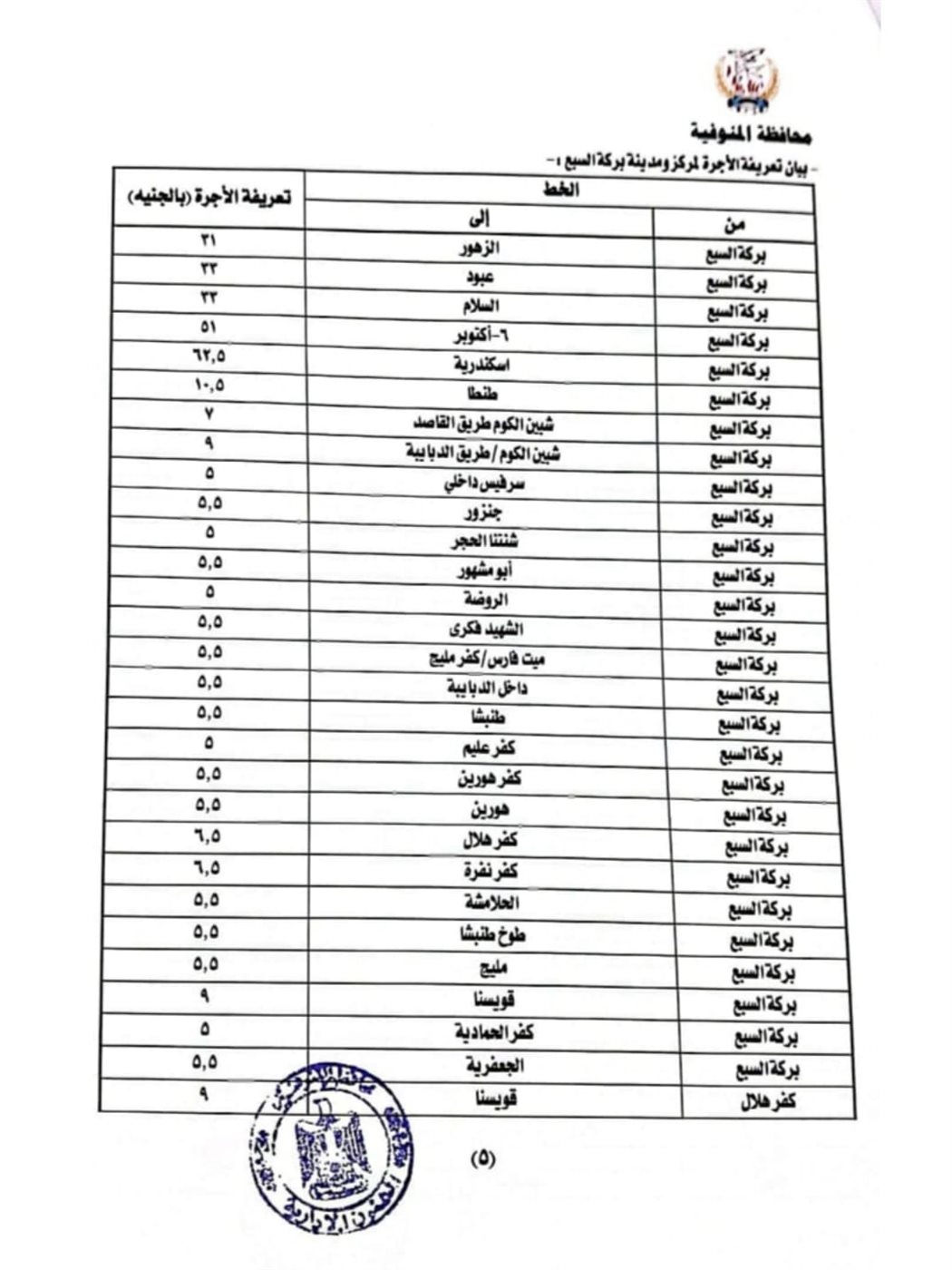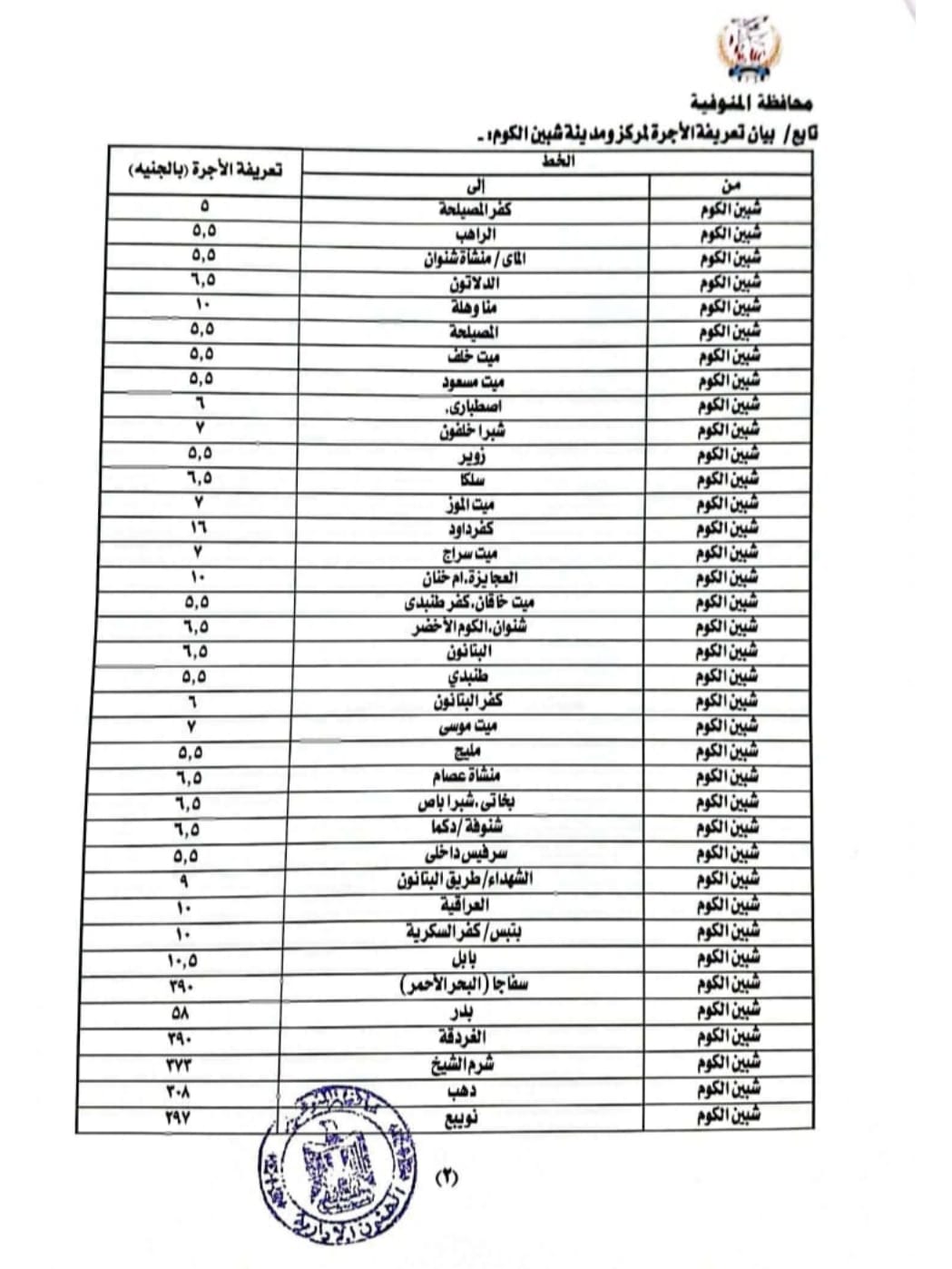 لجميع الخطوط، تعريفة الركوب الجديدة بالمنوفية بعد زيادة أسعار البنزين والسولار