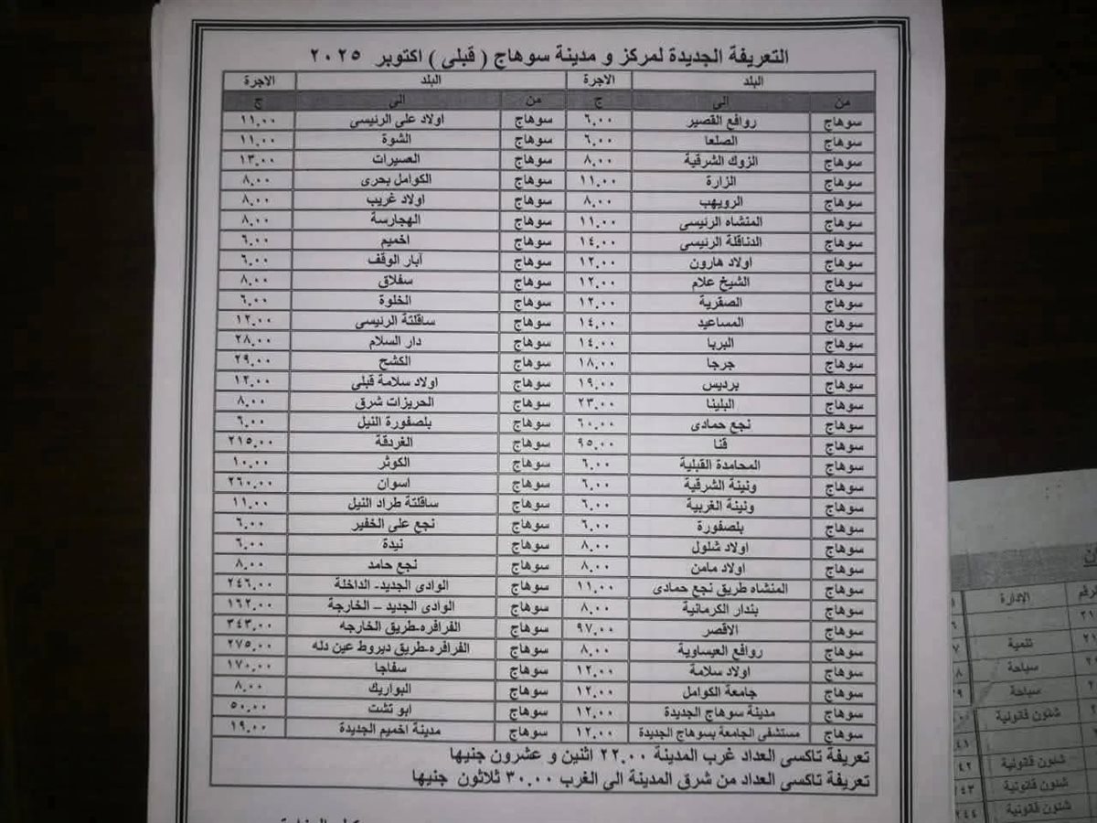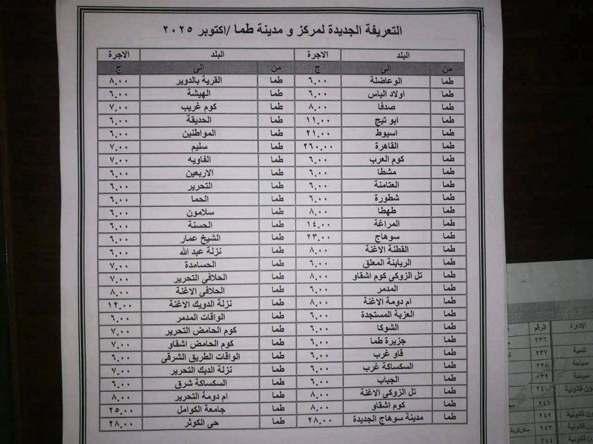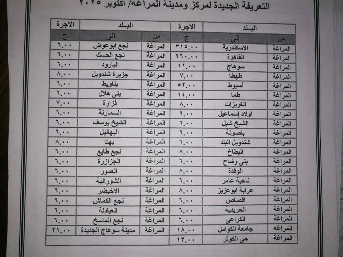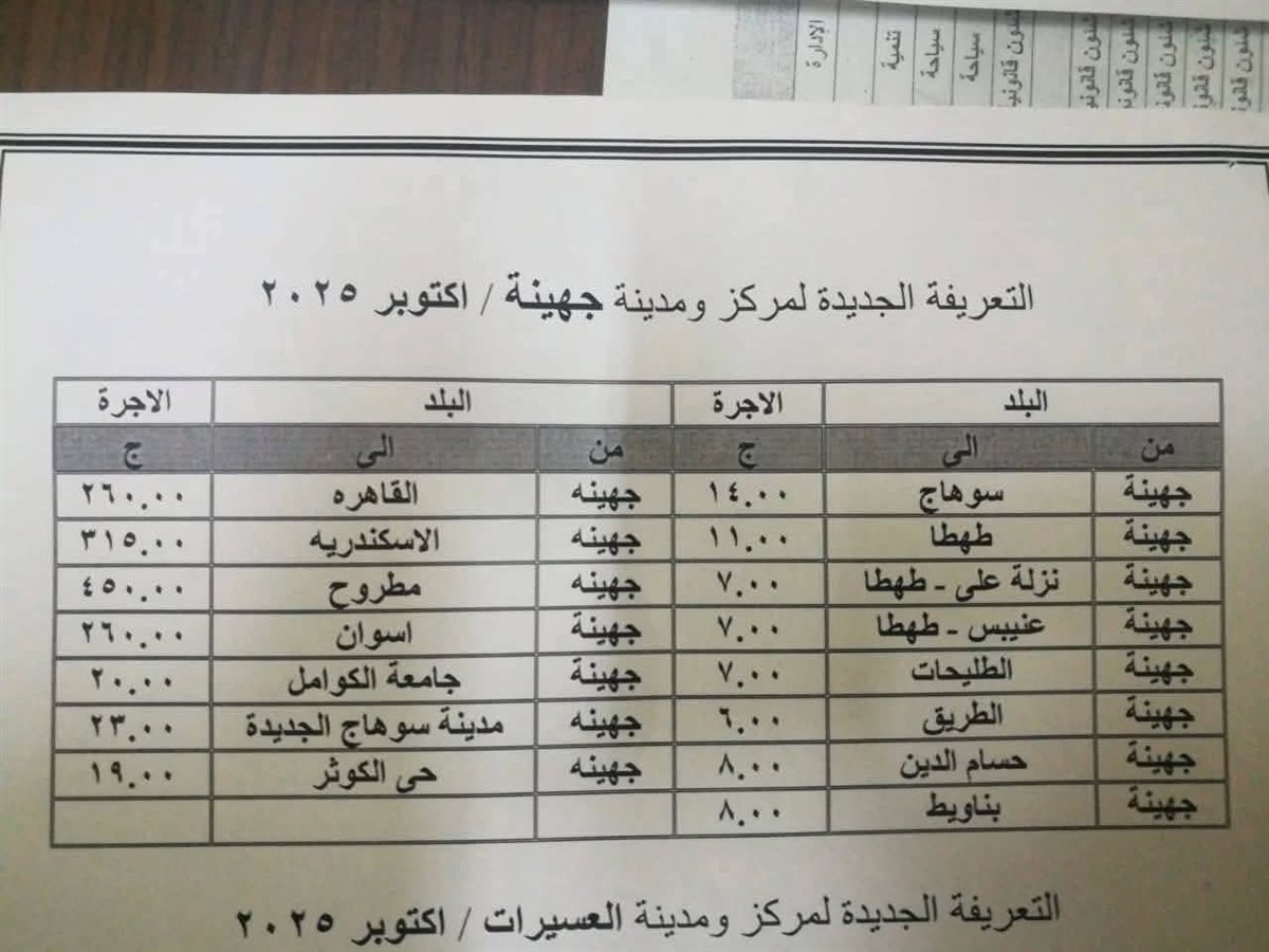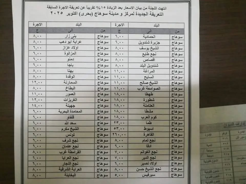 التعريفة الجديدة لسيارات الأجرة بسوهاج