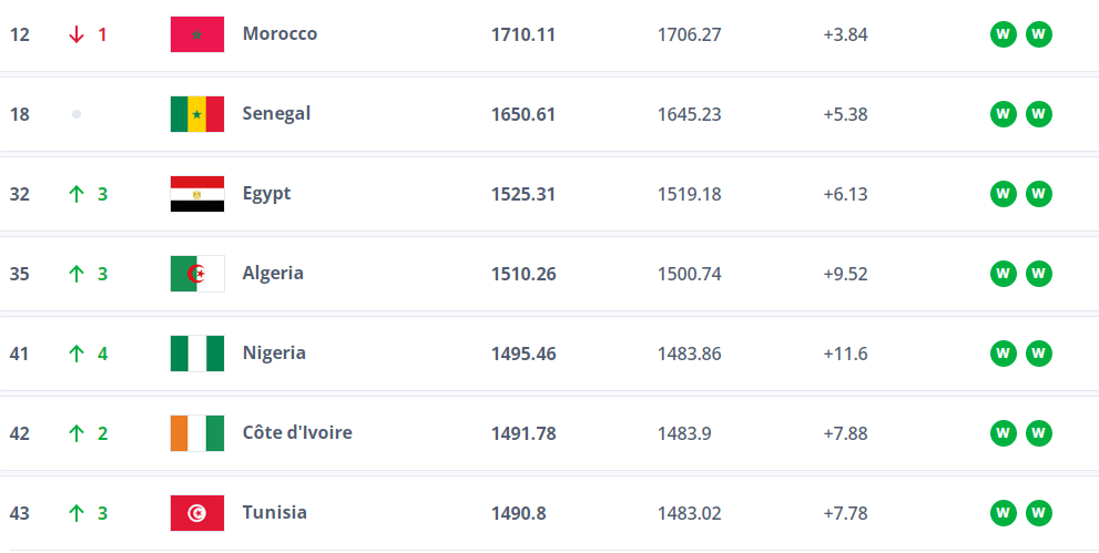 الصدارة لـ أسود الأطلس، ترتيب أفضل المنتخبات الأفريقية في تصنيف الفيفا