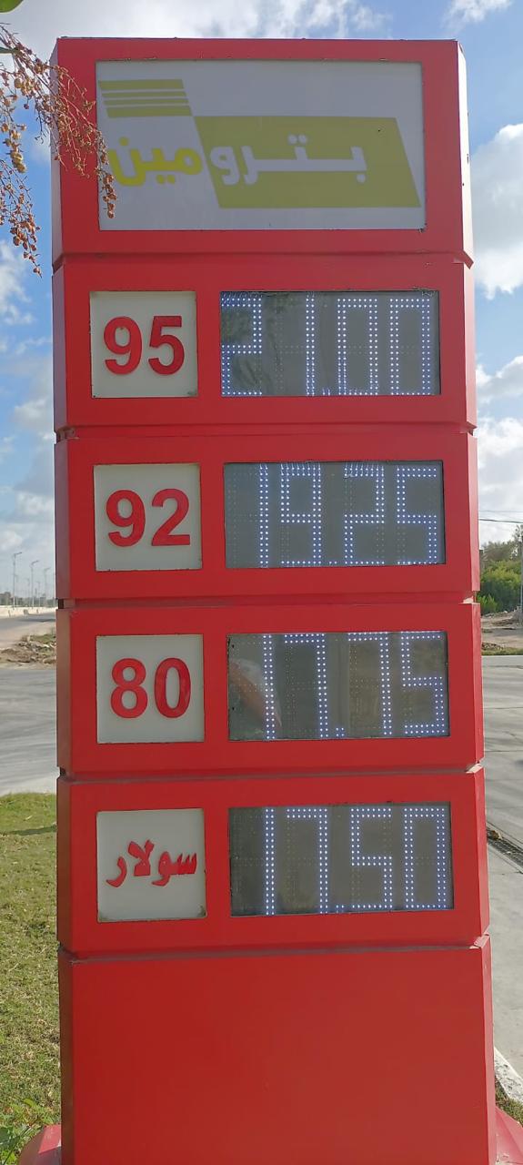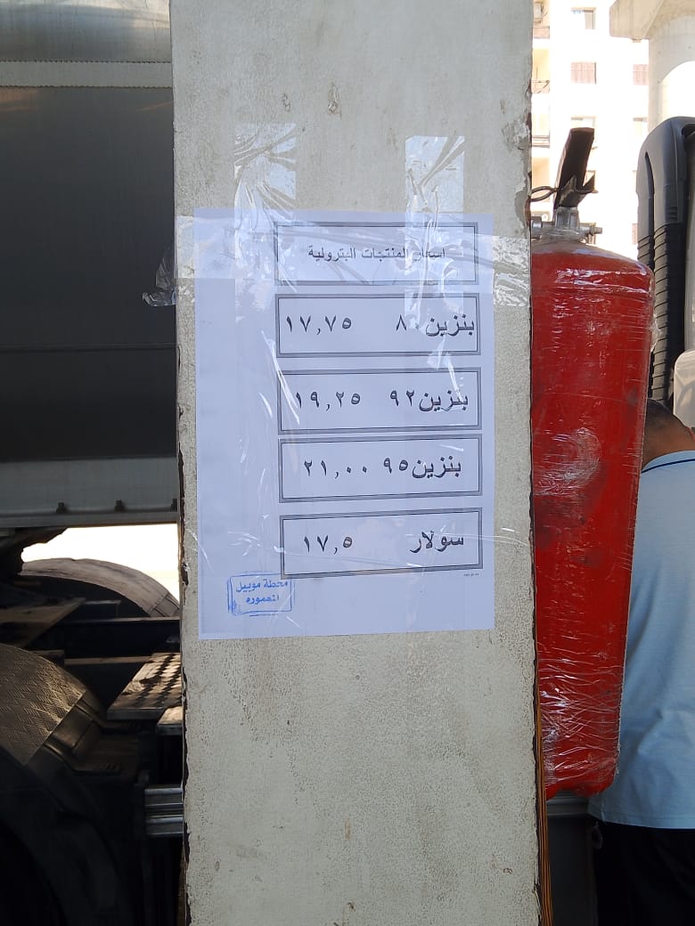 وبنزين ٩٢ بسعر ١٩.٢٥ جنيه / لتر، وبنزين ٨٠ بسعر ١٧.٧٥ جنيه /لتر وسولار بسعر ١٧.٥٠ جنيه /لتر، كما تم تسعير أسطوانة البوتاجاز الحجم المنزلي بسعر ٢٢٥ جنيهًا، وأسطوانة البوتاجاز الحجم التجارى ٤٥٠ جنيهًا.