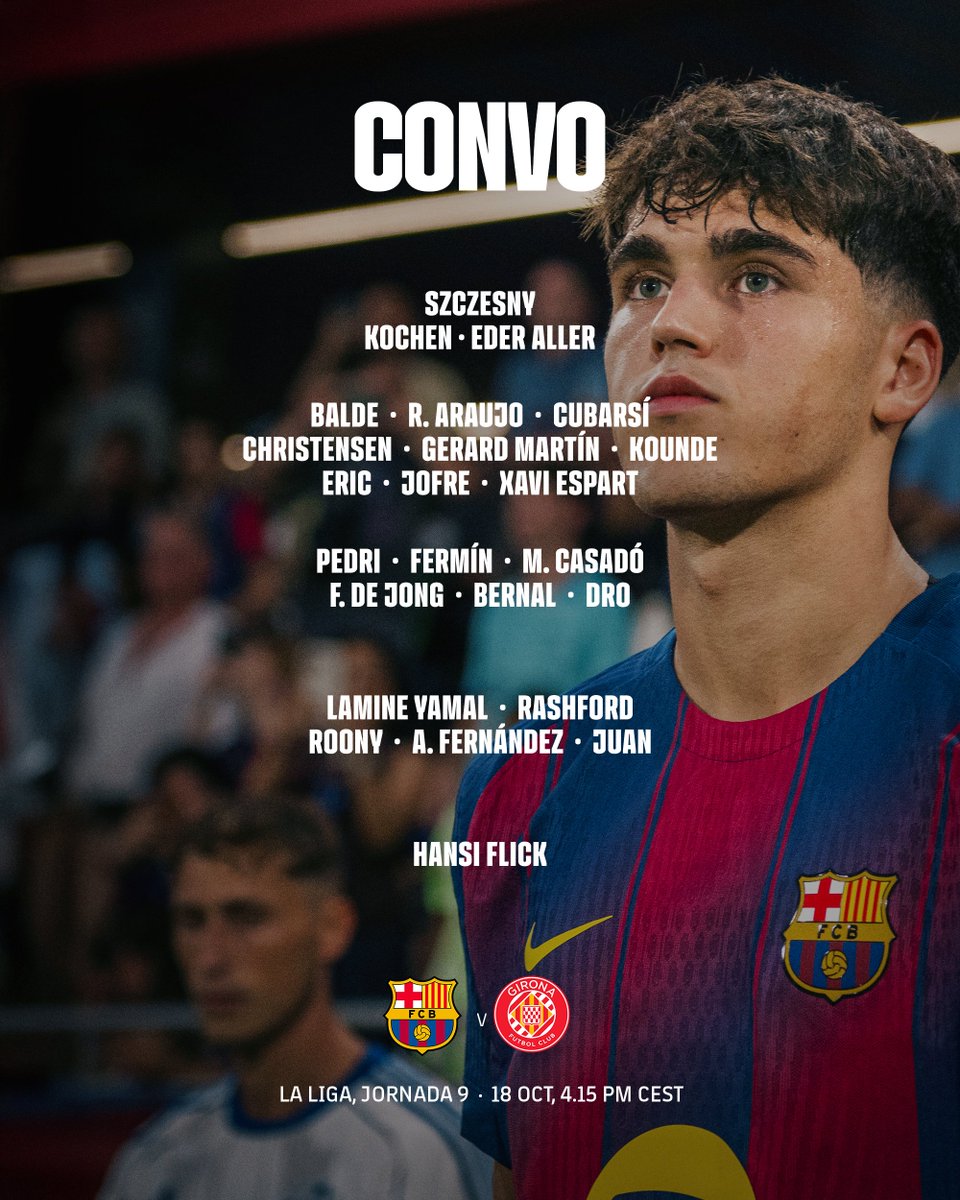 كشف هانز فليك مدرب برشلونة قائمة فريقه لمواجهة جيرونا على ملعب "مونتجويك" اليوم السبت، ضمن منافسات الجولة التاسعة من الدوري الإسباني “الليجا”.