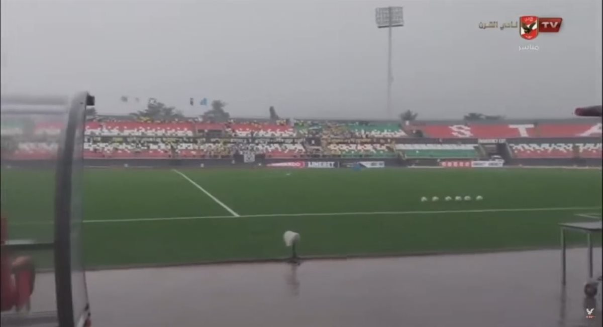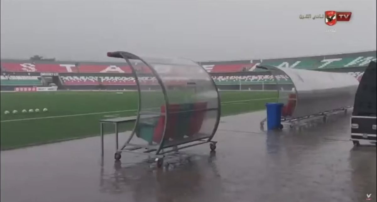 سقوط أمطار غزيرة على ملعب مباراة الأهلي وإيجل نوار البوروندي