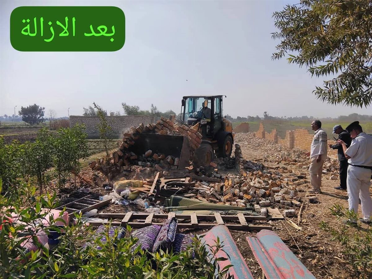 إزالة حالة تعدٍ على الأرض الزراعية بقرية الأخصاص بمنشأة القناطر