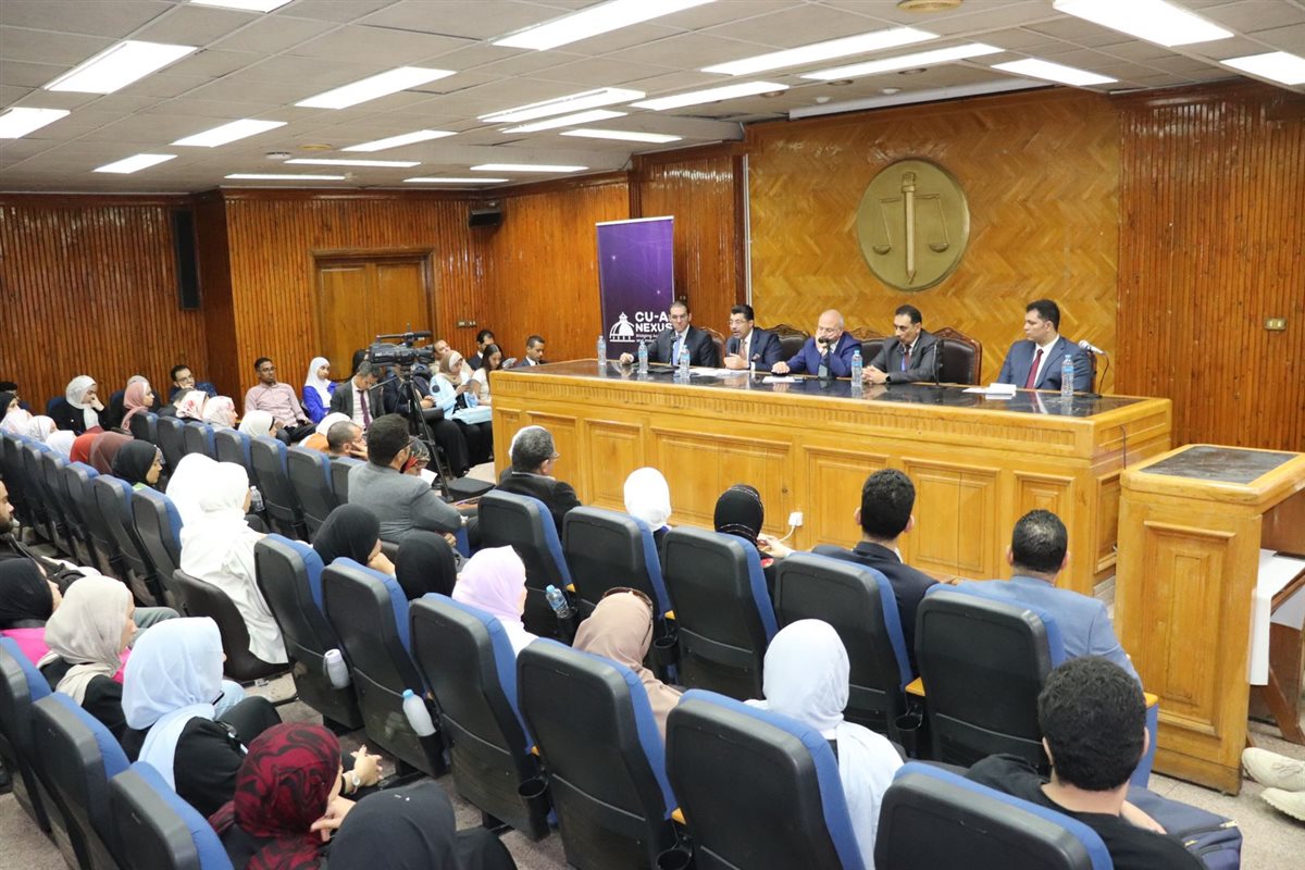 وشارك في الجلسة كل من: الدكتور محمود السعيد نائب رئيس جامعة القاهرة لشئون الدراسات العليا والبحوث، والدكتور محمد صلاح الدين، أستاذ القانون الدولي الخاص ورئيس المعهد الملكي للمحكمين المعتمدين، والدكتورة انجي سراج، المدير التنفيذي للعقود وإدارة العمليات التجارية، وجمال أحمد أبو علي، عضو مجلس إدارة الجمعية المصرية لشباب الأعمال، وأدار الجلسة الدكتور محمد سامح عمرو، عميد كلية الحقوق بجامعة القاهرة.