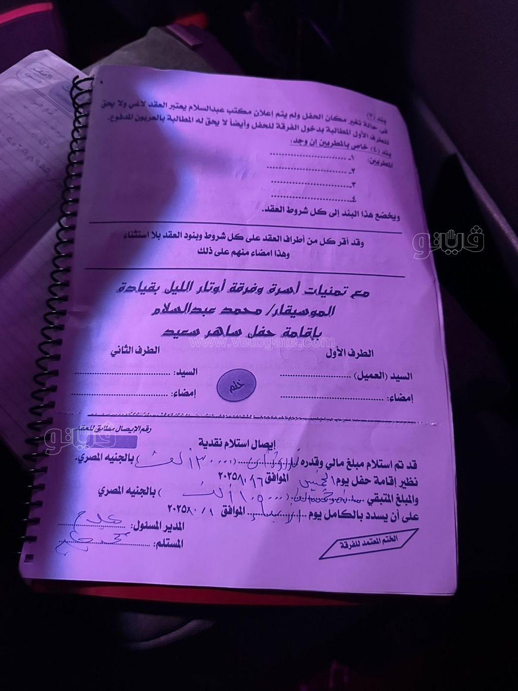 حصلت "فيتو" على عقود حفل الزفاف الذي تسبب في أزمة بين المواطن فرغلي عبد السميع وعازف الأورج الشهير محمد عبد السلام، بعد اتهام الأخير بـ النصب، نتيجة تغيبه عن إحياء الحفل رغم حصوله على مبلغ 130 ألف جنيه.