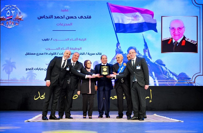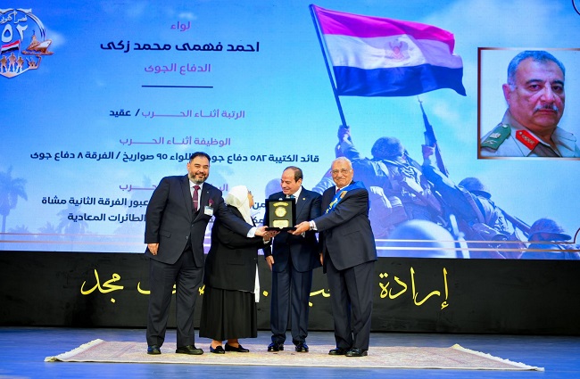وأضاف السفير محمد الشناوي، المُتحدث الرسمي، أن الرئيس قام، عقب مراسم تكريم أحد عشر من أبطال حرب أكتوبر المجيدة، بإلقاء كلمة تناول فيها ما حققته مصر من إنجازات بارزة خلال شهر أكتوبر، وفي مقدمتها نصر أكتوبر العظيم عام ١٩٧٣، كما أشار الرئيس إلى أن شهر أكتوبر من العام الجاري شهد وقف الحرب في قطاع غزة، وانتخاب الدكتور خالد العناني مديرًا عامًا لمنظمة اليونسكو، حيث وجّه الرئيس التهنئة للدكتور العناني ولأسرته، مؤكدًا دعم الدولة الكامل له لإنجاح مهمته الدولية الجديدة. كما شهد الشهر ذاته انتخاب مصر لعضوية المجلس الدولي لحقوق الإنسان، وأعرب الرئيس عن تطلعه إلى فوز مصر بمنصب مدير عام منظمة الطيران المدني الدولي (الايكاو).