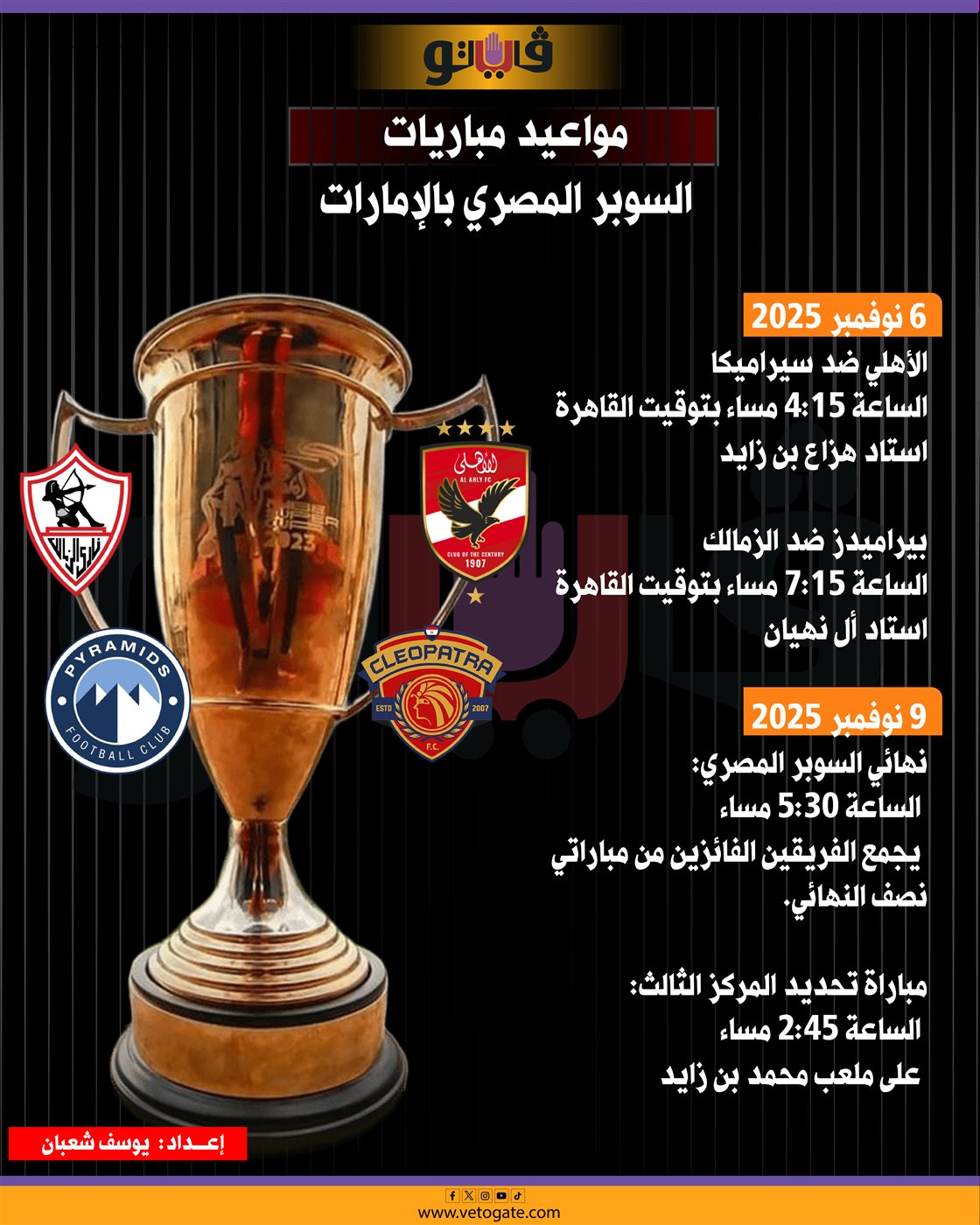 مواعيد مباريات السوبر المصري بالإمارات (انفوجراف)