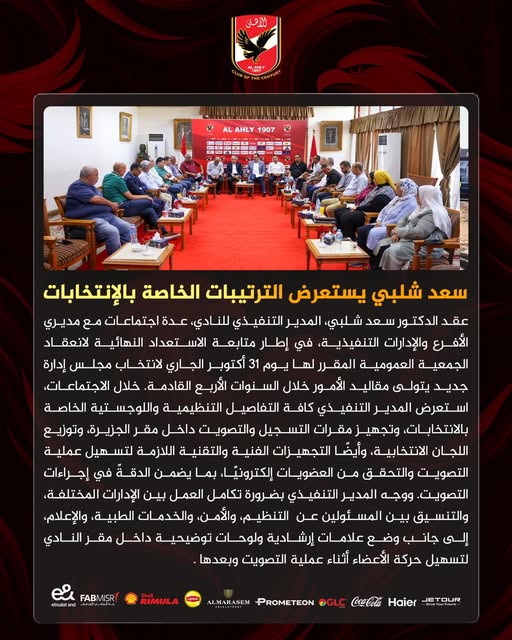 سعد شلبي يستعرض الترتيبات الخاصة بانتخابات الأهلي