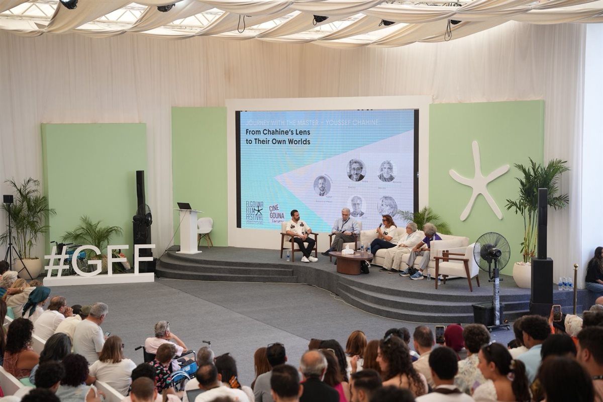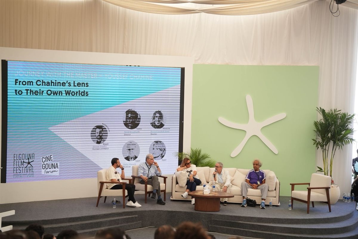 في اليوم الرابع من فعاليات الدورة الثامنة لمهرجان الجونة السينمائي، عقدت جلسة حوارية بعنوان "رحلة مع الأستاذ: من عدسته إلى عوالمهم الخاصة – مئوية يوسف شاهين"، أدارها أحمد شوقي، مدير منصة سيني جونة للتمويل.