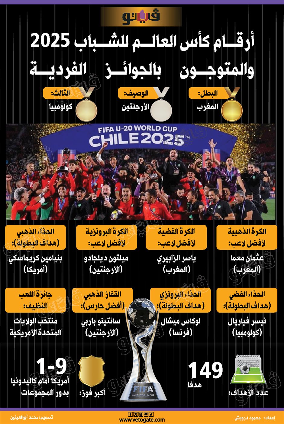 أرقام كأس العالم للشباب 2025 والمتوجون بالجوائز الفردية (إنفوجراف)