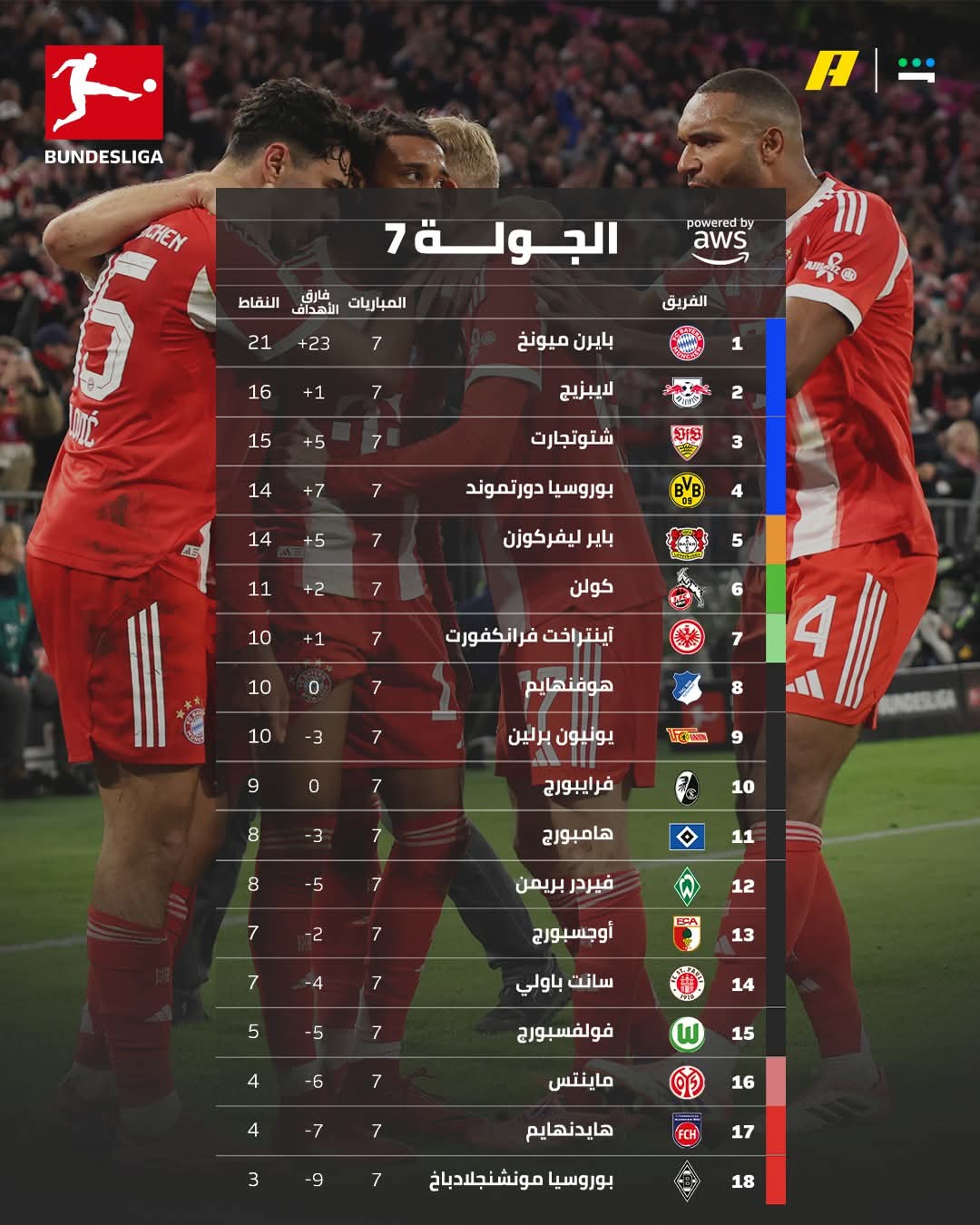 بايرن ميونخ بالعلامة الكاملة، ترتيب الدوري الألماني بعد الجولة السابعة
