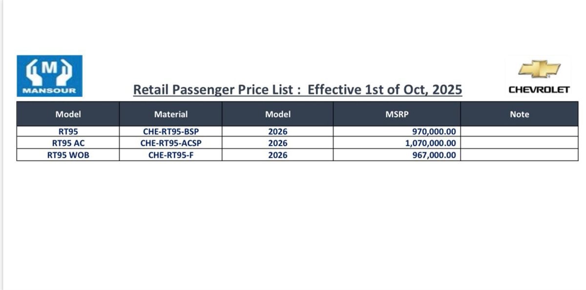 وأخطر الوكيل المحلي للعلامة التجارية شيفروليه كافة الموزعين والتجار بأسعار الدبابات في السوق المحلي. ومن المقرر العمل بالأسعار الجديدة، بداية من اليوم الاثنين منتصف شهر أكتوبر، وهي كالتالي: