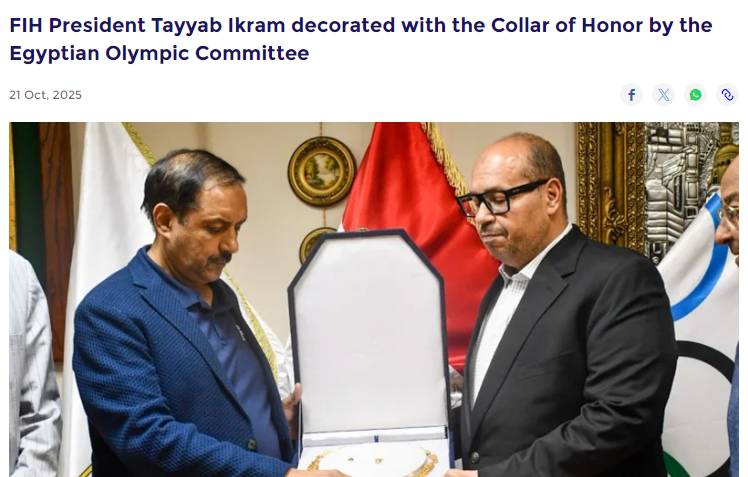 الهوكي، سلط الاتحاد الدولي للهوكي الضوء على زيارة رئيسه الباكستاني “الطيب إكرام” للقاهرة وتكريمه في مقر اللجنة الأولمبية المصرية على هامش زيارته.