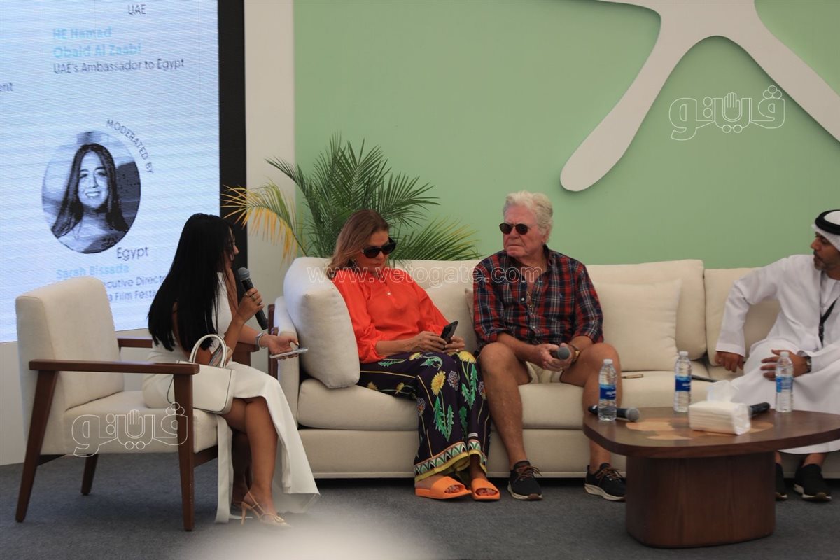 وحضر اللقاء، النجم حسين فهمي، النجمة يسرا، حمدان مسلم المزروعي رئيس مجلس إدارة هيئة الهلال الأحمر الإماراتي، حميد عبيد الزعابي سفير دولة الإمارات العربية المتحدة لدى مصر، فيما تدير الحوار سارة بيسادة نائب المدير التنفيذي للمهرجان.